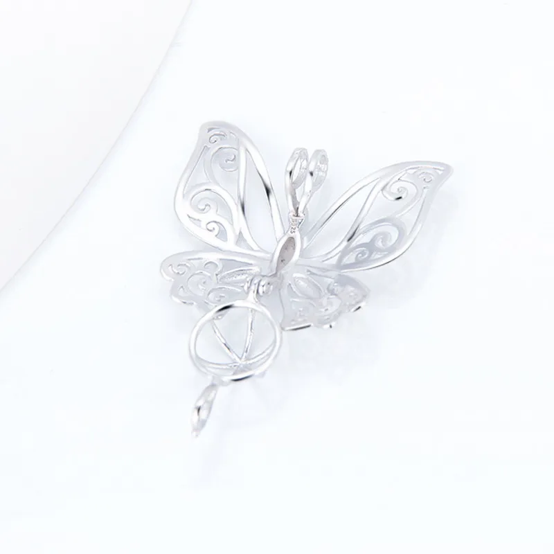 Кулон женский из серебра 925 пробы с жемчугом и бабочкой, 3 шт.