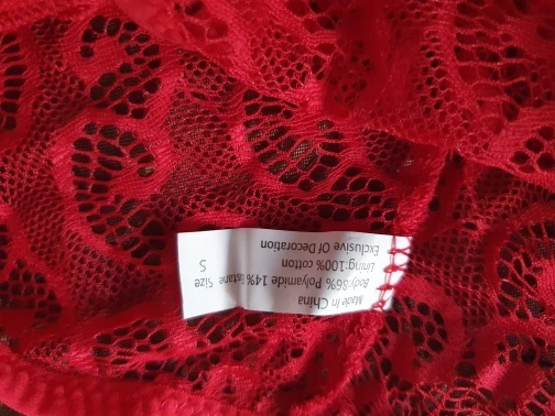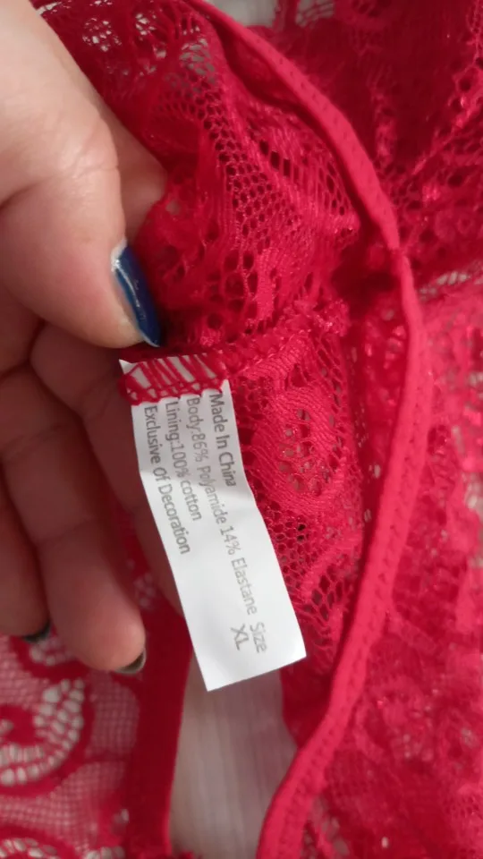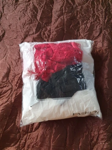 Пошив хороший. Кружево тонкое. Запах сильный, неприятный, надеюсь, после стирки уйдёт. Размеры странные. Черные значительно больше красных и белых, хотя на всех указано M. В целом, цена=качество. Претензий к продавцу нет.