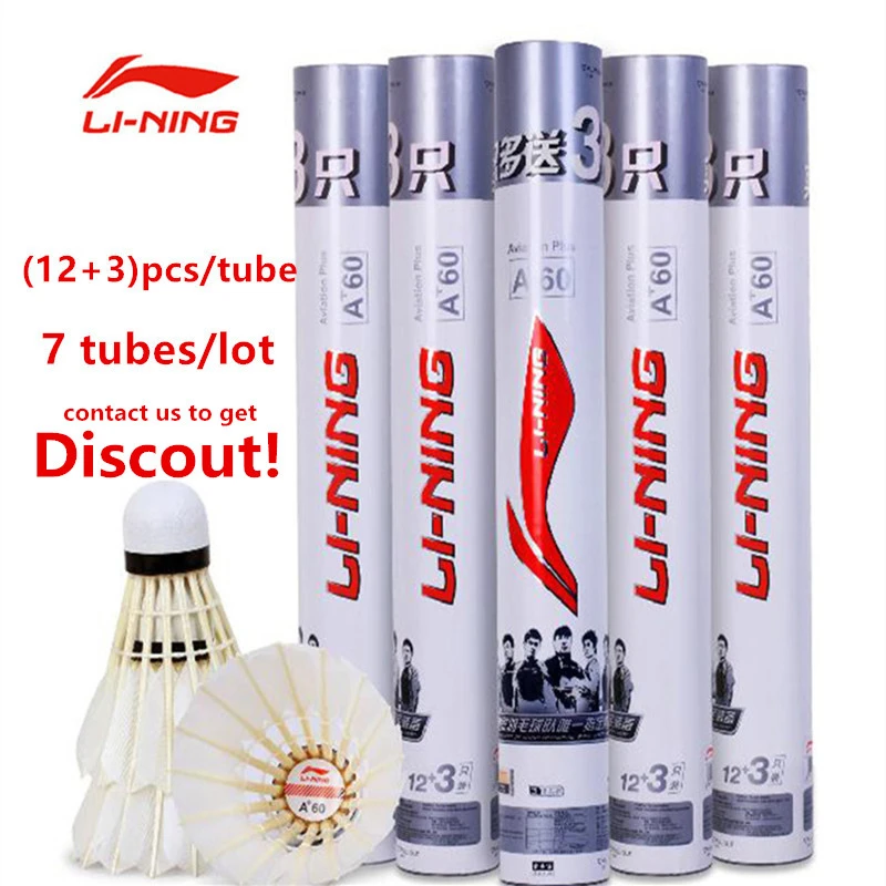 105 шт. = 7 трубок Li-Ning бренд A + 60 Волан для бадминтона, птички с гусиным пером, стабильно прочные, Li Ning Battledore, для игры в бадминтон