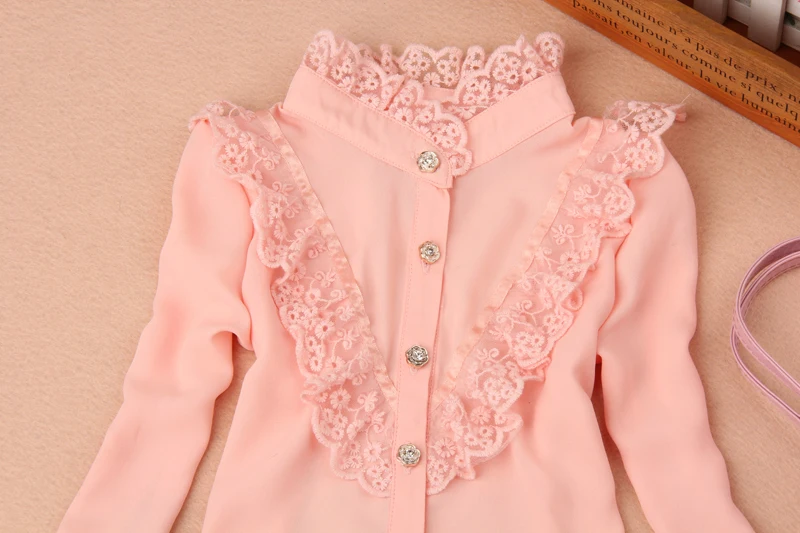 Демисезонные школьные блузки для девочек; Одежда для детей; Одежда для маленьких девочек; Шифоновая Детская рубашка; Кружевные лоскутные блузки; Детская одежда