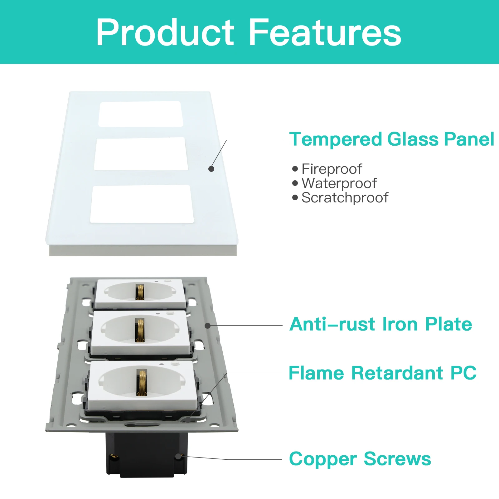 Розетка электрическая Bseed, тройная, 16 А, 110-240 В
