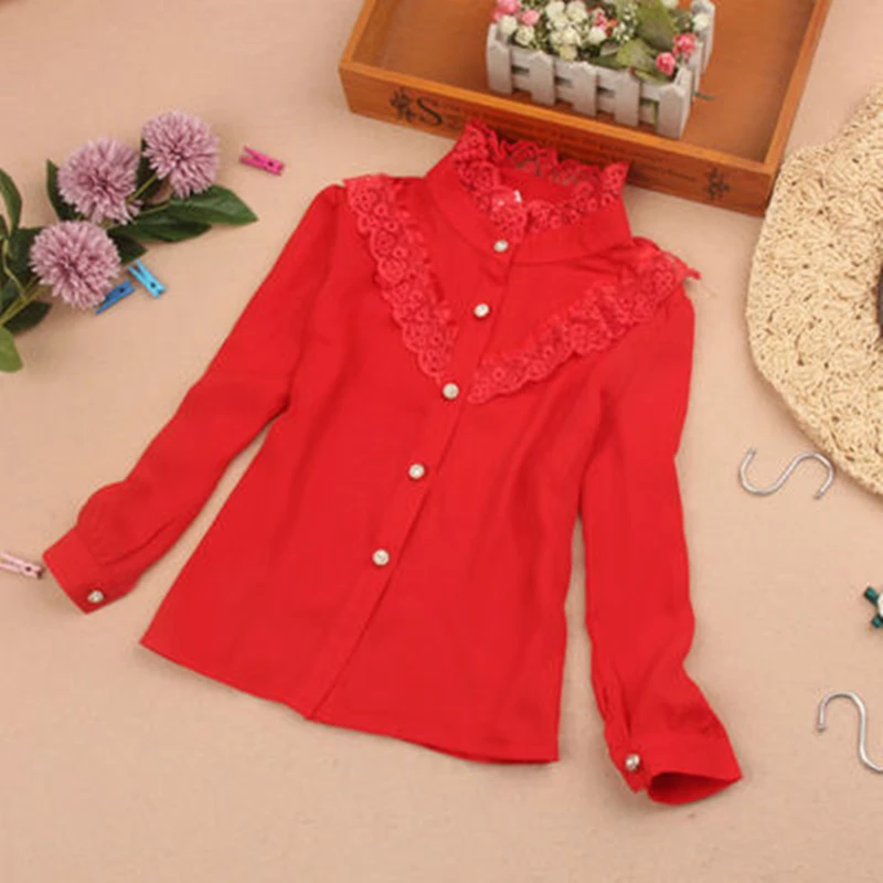 Школьные блузки для девочек, детская одежда на весну-осень, одежда для маленьких девочек, шифоновая Детская рубашка, кружевные лоскутные блузки, детская одежда
