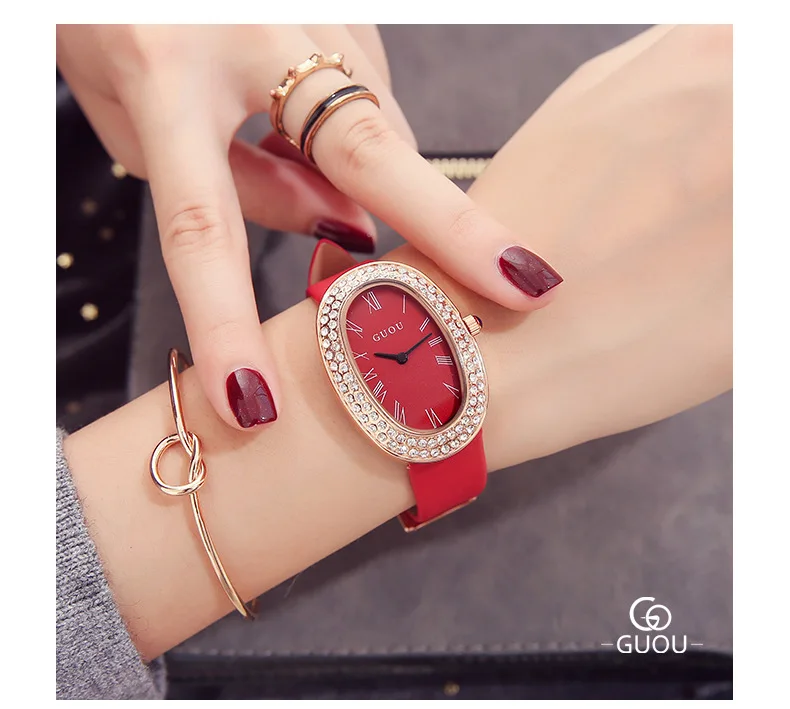 Часы наручные Guou женские кварцевые, модные брендовые повседневные, с овальным циферблатом и ремешком, для отдыха
