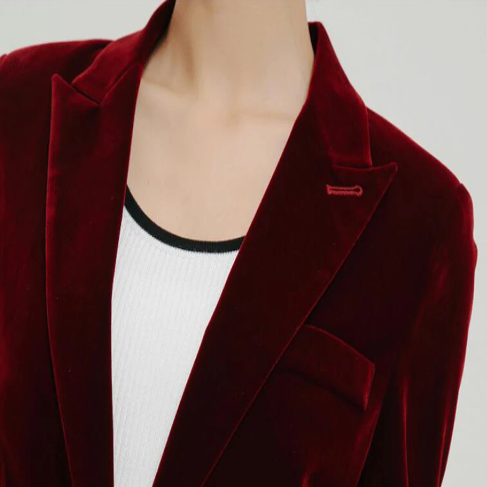 Женский однобортный бархатный пиджак KoHuiJoo, зеленая, черная, винно-красная куртка на пуговицах, элегантный женский костюм большого размера на весну