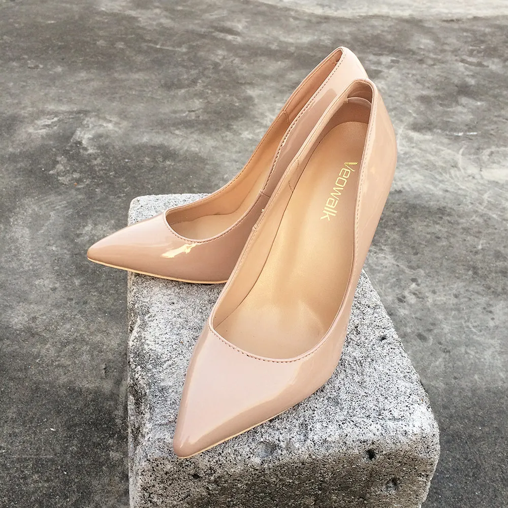 Veowalk, однотонные женские сексуальные туфли-лодочки с острым носком, ультратонкие женские туфли из лакированной кожи, модные вечерние туфли