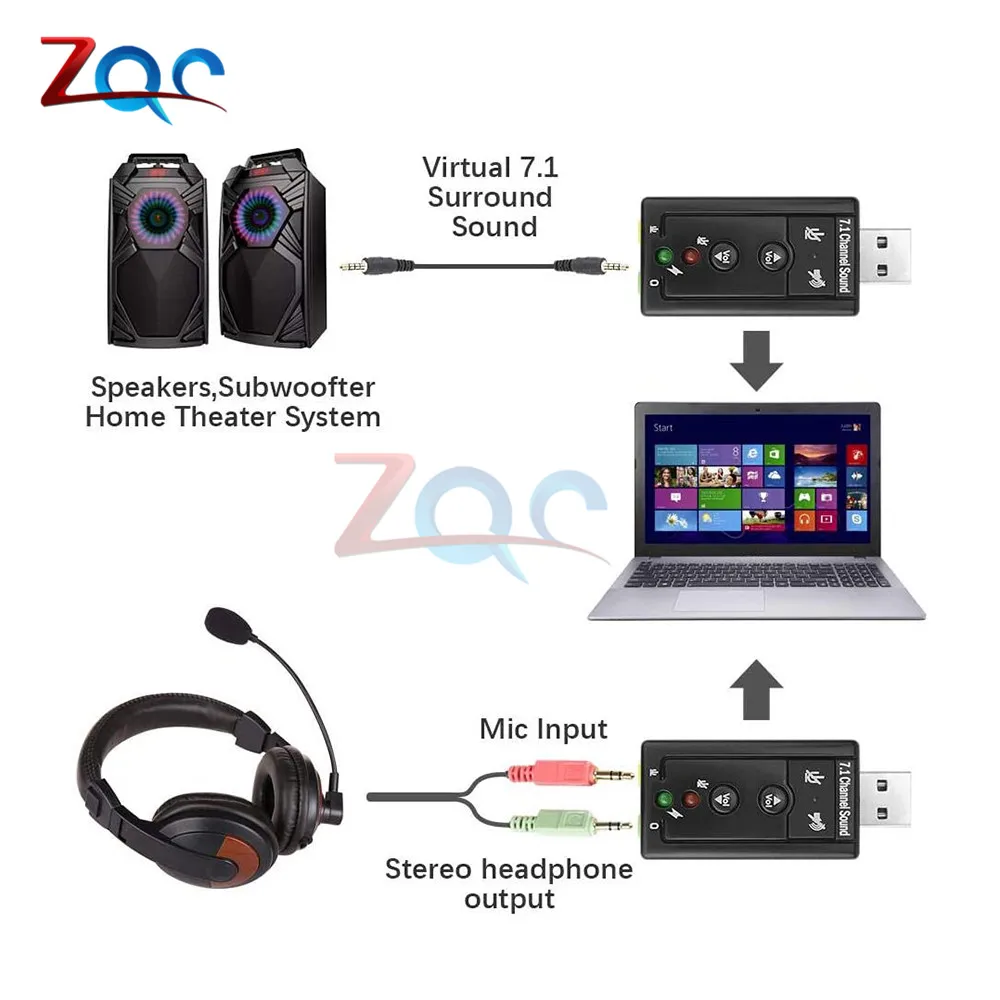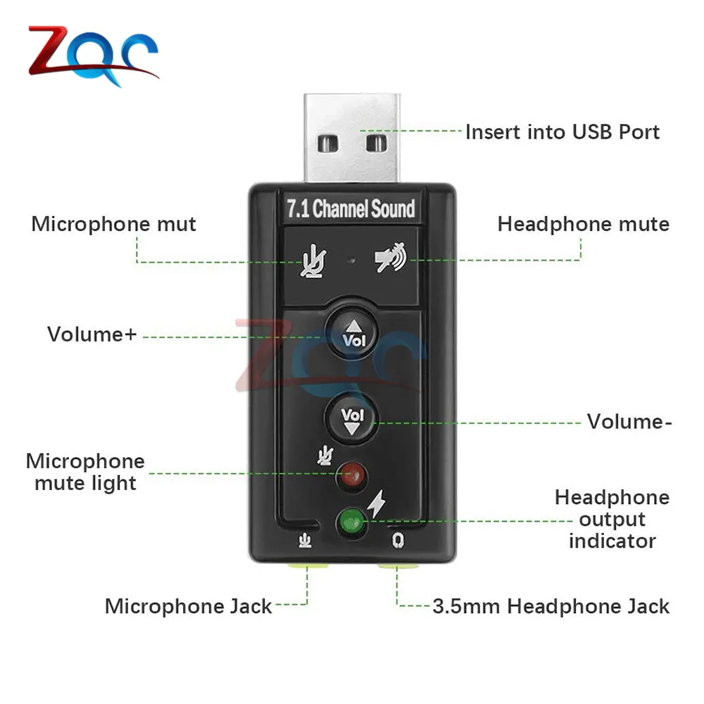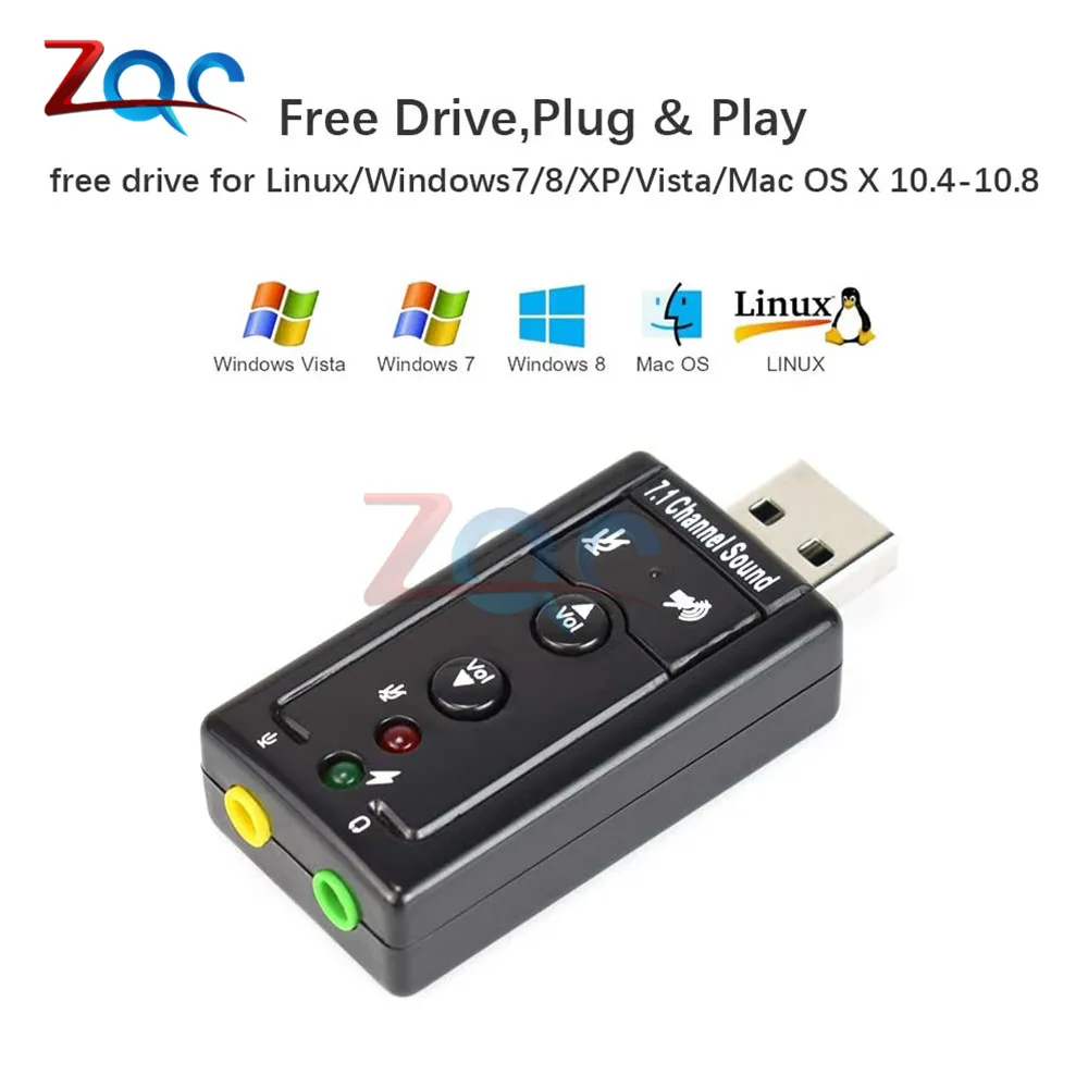 7,1 каналов USB внешняя звуковая карта аудио адаптер USB 2,0 3,5 мм разъем для подключения микрофона наушников для Windows Mac OS Linux