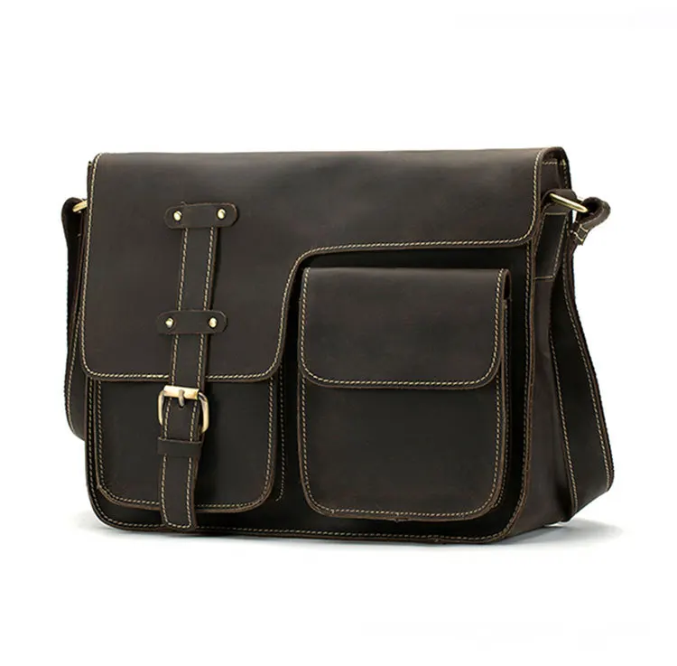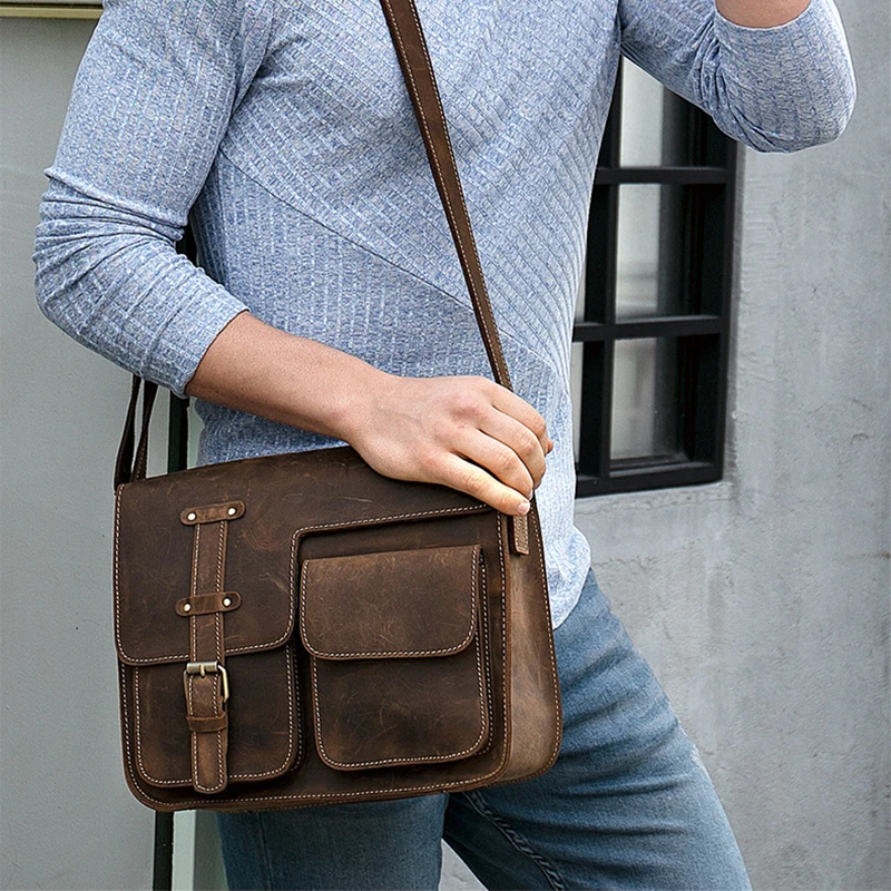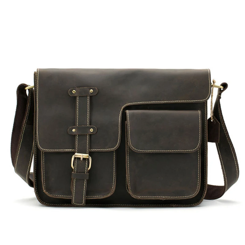 Сумка-мессенджер мужская из натуральной воловьей кожи, саквояж кросс-боди из натуральной кожи, портфель на плечо, школьный ранец цвета хаки