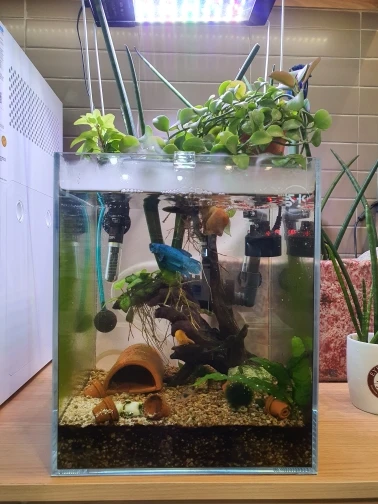 Нигде не указано и ни на одной фотографии этого нет, а по факту из него бьет фонтан нераспыленной воды. Этот фонтан бьет всегда, а вот чтобы появлялась распыленная вода надо основательно потанцевать с бубном и повозиться с глубиной погружения распылителя и с его фиксацией. Распыленная вода появится, а вот фонтан хочешь или не хочешь будет всегда и вот если вам не нужны непрекращающиеся брызги нераспыленной воды то вам не стоит это покупать. Если борта вашего контейнера ниже 10 см, то вокруг на полу будет разбрызганная вода от фонтана.