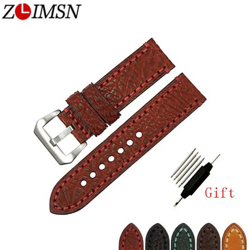 Ремешок ZLIMSN из натуральной кожи для мужских наручных часов, аксессуары для часов, 5 цветов, подходит для часов 20 мм 22 мм 24 мм 26 мм