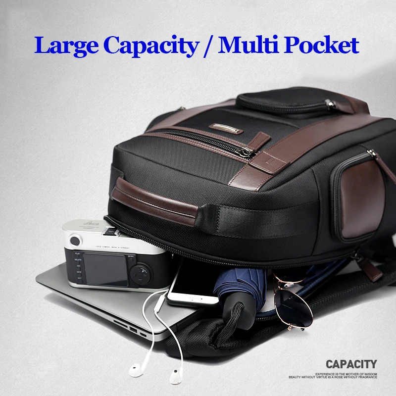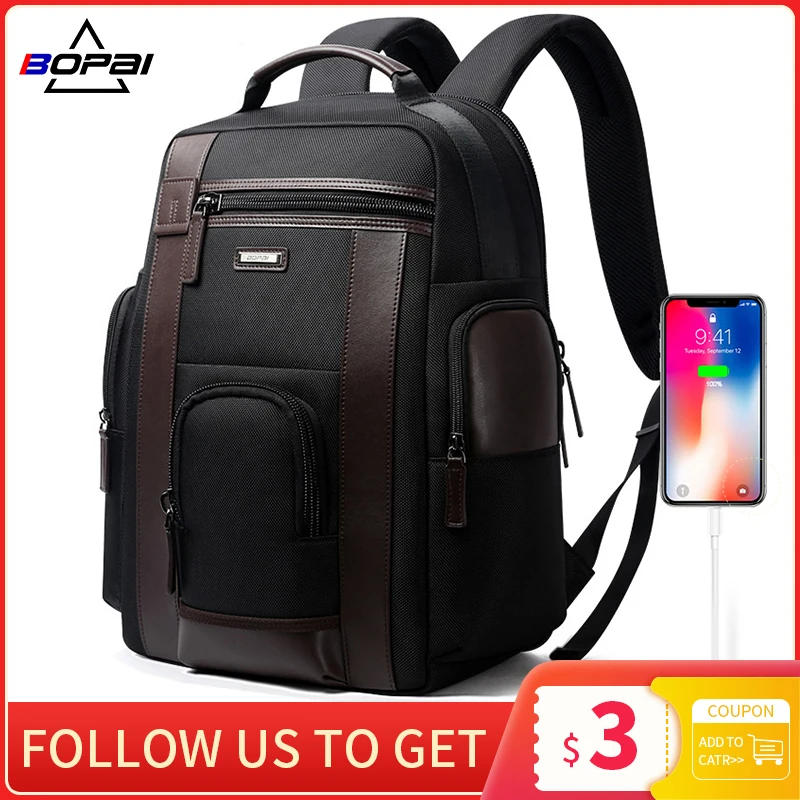 Рюкзак для мужчин и женщин BOPAI, черный однотонный нейлоновый рюкзак с несколькими карманами, для бизнеса, с USB-портом