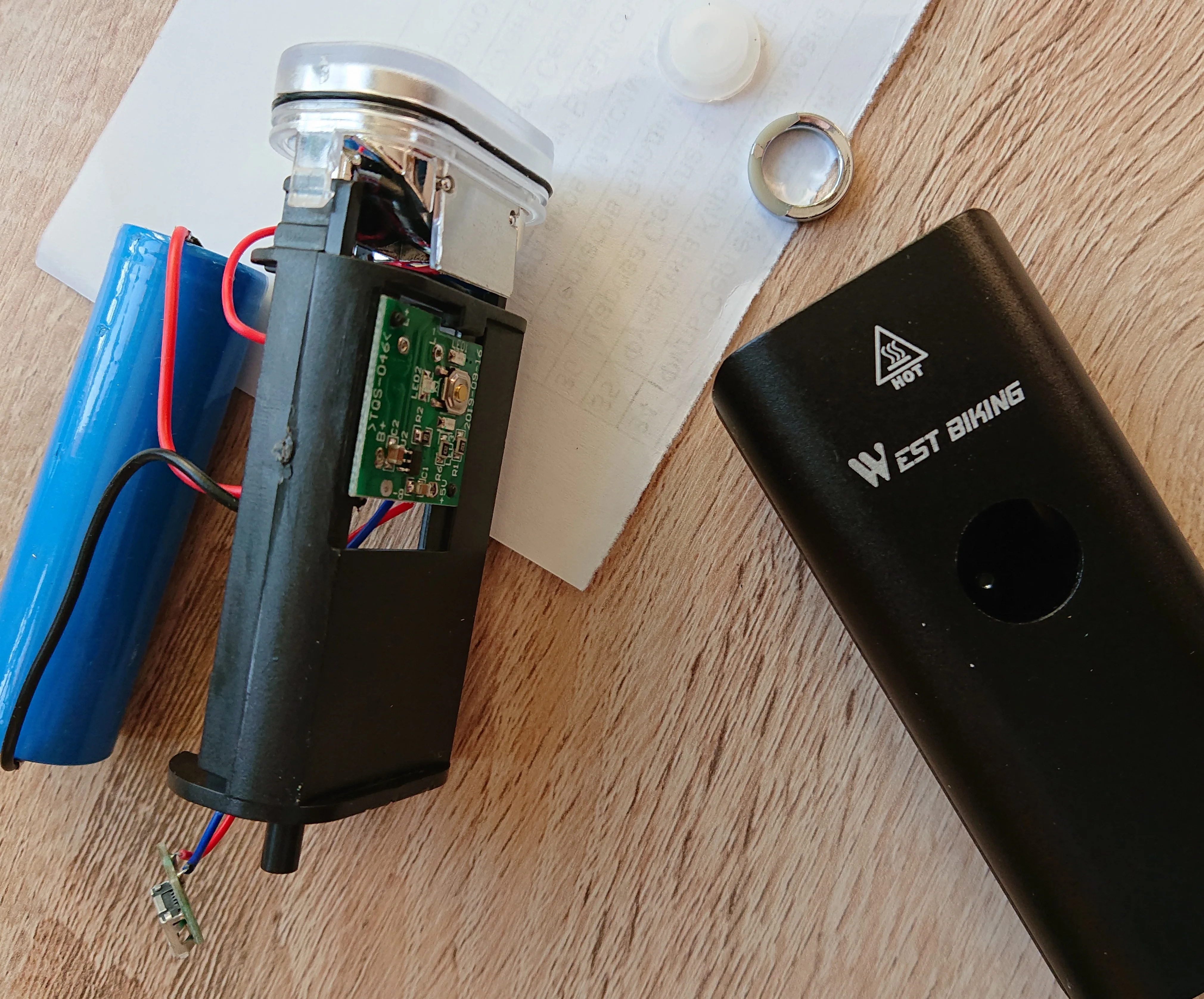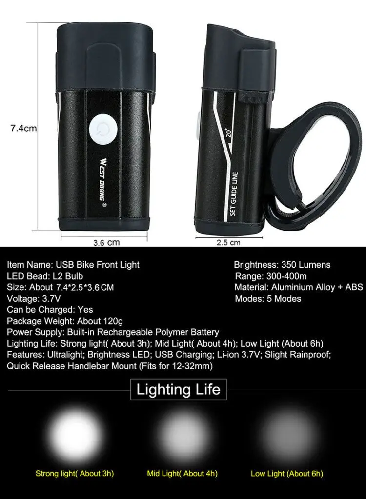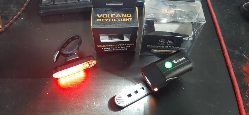 Передний свет кажется сильным (алюминиевый корпус) и свет очень четкий. Примечание: задний фонарь не имеет съемного аккумулятора, как я надеюсь. Это маленькая емкость 300 мА · ч внутри.