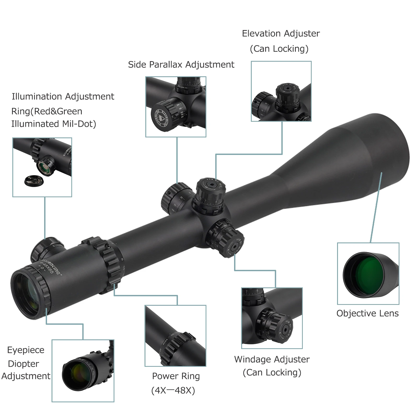 Visionking 4-48x65 широкоугольный прицел для прицеливания Mil-dot 35 мм винтовочный прицел тактический Водонепроницаемый Военный прицел для охотничьей винтовки