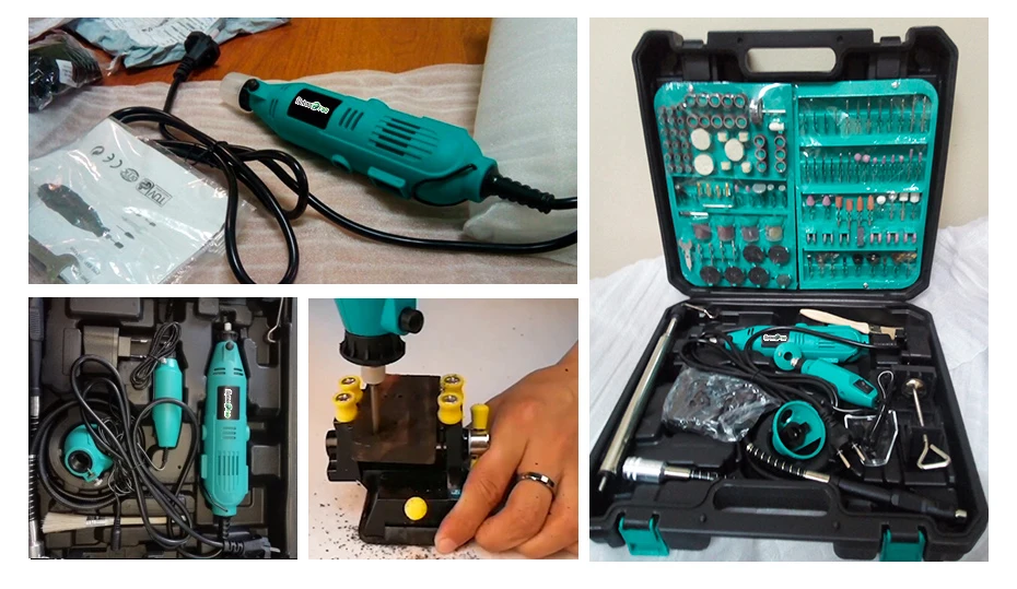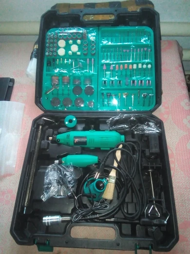 Получил сегодня посылку. Прислали быстро. Упаковано просто отлично: обмотано каким-то мягким материалом и пленкой. Теперь по содержимому. Наличие большого количества насадок радует, но нет ни одной по дереву. Придется докупить. Большая машинка сделано хоть и дёшево, но достаточно хорошо. Все на подшипничках. Шпиндель жёсткий. А вот маленькая машинка не понравилась. Слабенькая, вал болтается. Я ей не нашел применения. Это скорее игрушка, а не инструмент. Так что можете и не в комплекте покупать, если у вас есть маленькие дети, внуки, племянники. В остальном неплохо. По стали тяжко идёт, а по дереву, пластику и т.п. отлично. Рекомендую рукодельникам.