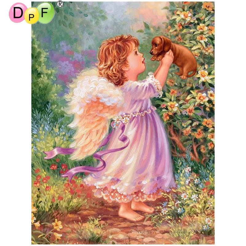 DPF DIY маленький ангел 5D картина на стену алмазная живопись вышивка крестиком Алмазная Вышивка ремесла Алмазная мазаическая квадратная домашний декор