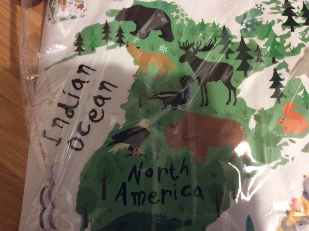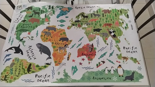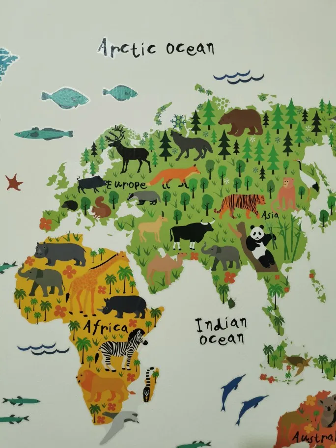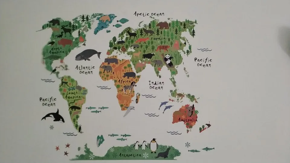 Наклейки на стену из ПВХ, с изображением животных из мультфильма Карта мира, 037