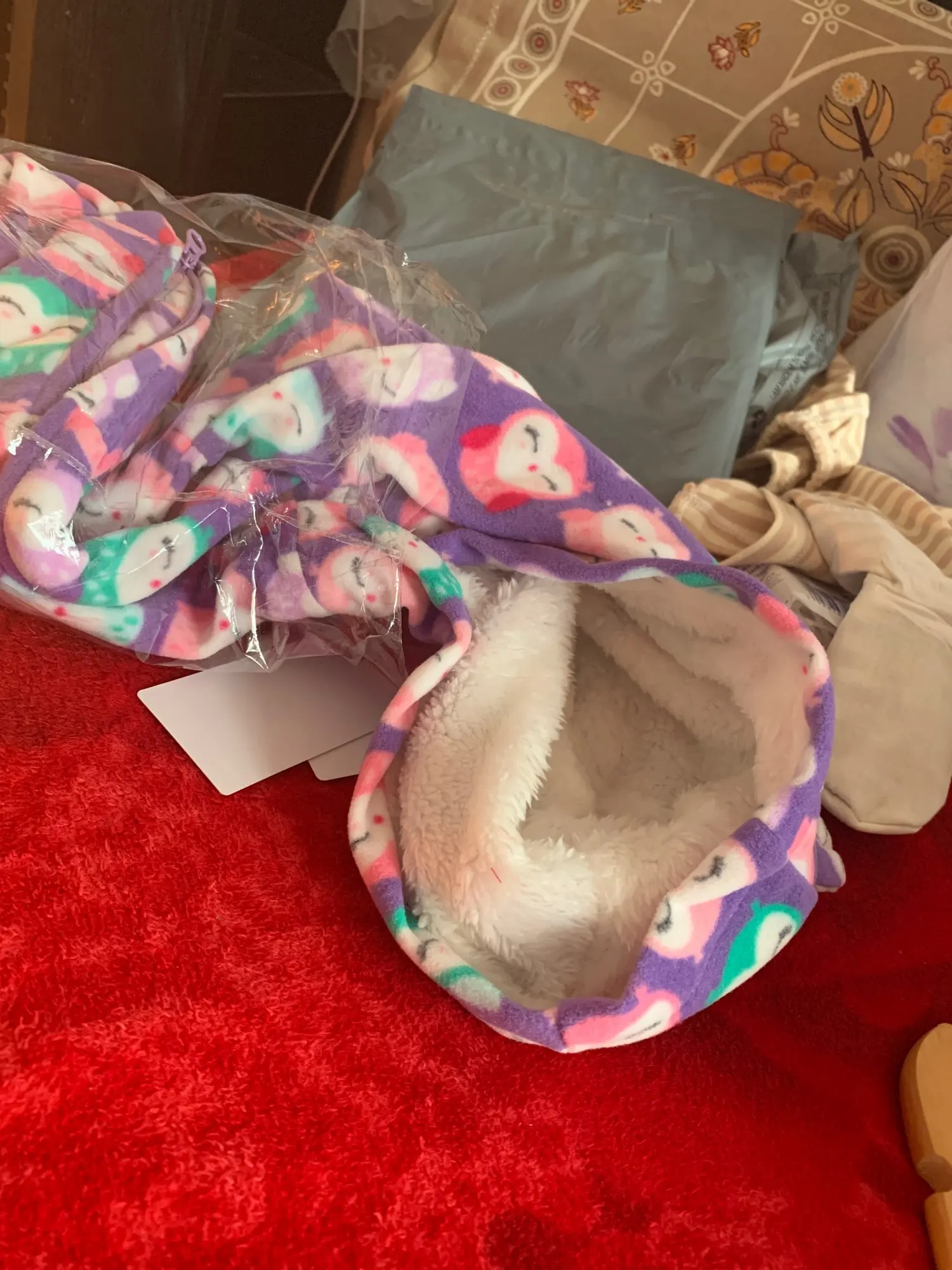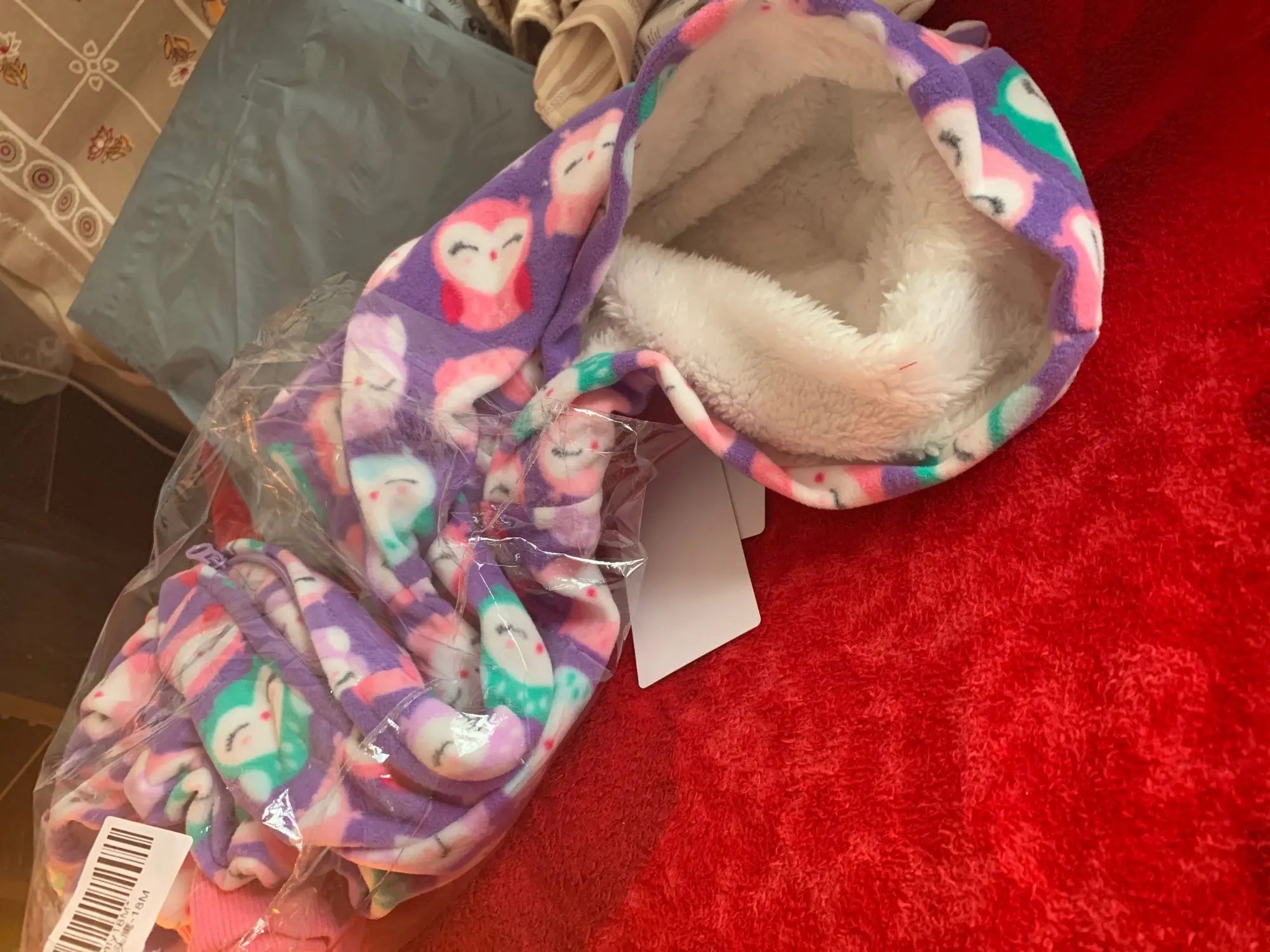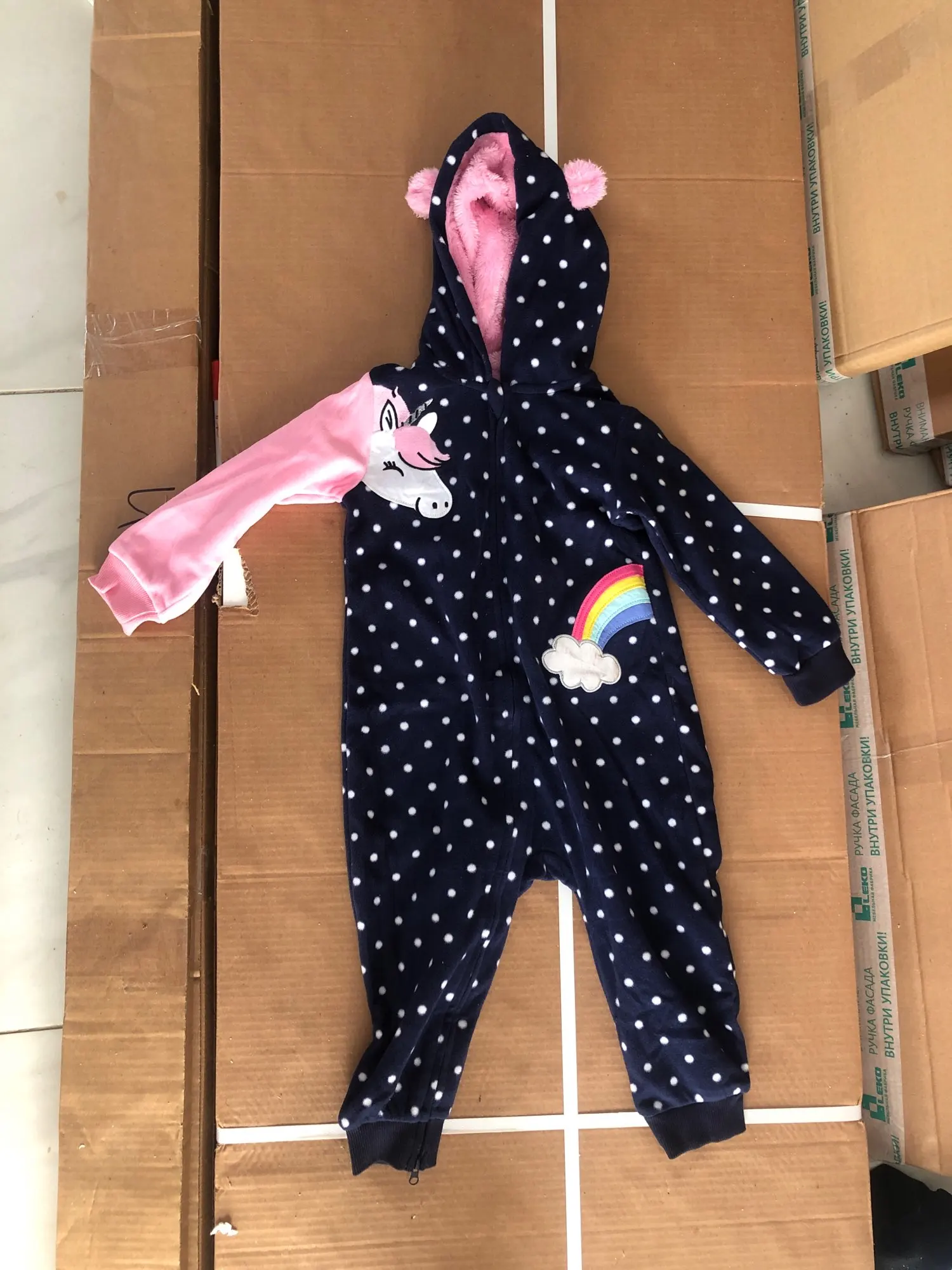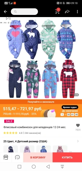 Посылка дошла за 18 дней до СПб. Сам товар надлежащего качества, но размер.. нам 4 месяца 68см. Заказ на 12 месяцев и мы в него еле еле влезли. В сравнении с комбезом, с этого же магазина на 9 месяцев, ничем не отличается. По длине всего 60 см. Сам флис тонкий, на голое тело не оденешь. Только как поддевается на осень под синтепоновый комбез.