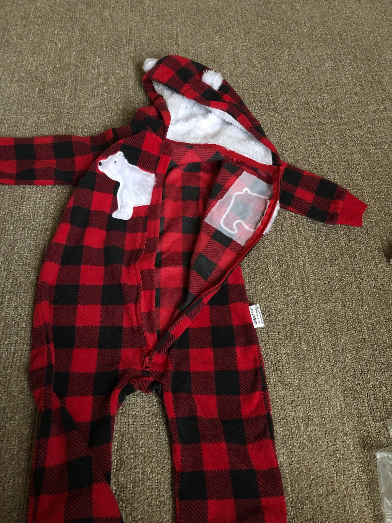 комбинезон шикарный,дочке сейчас 7 месяцев,мы брали размер 18м. ноги длиноваты,но я и брала с запасом. комбинезон очень мягкий, напоминает плед тонкий,на теплую погоду вообще шикарно будет. ниток не торчит, запаха нет. полностью соответствует описанию и фото