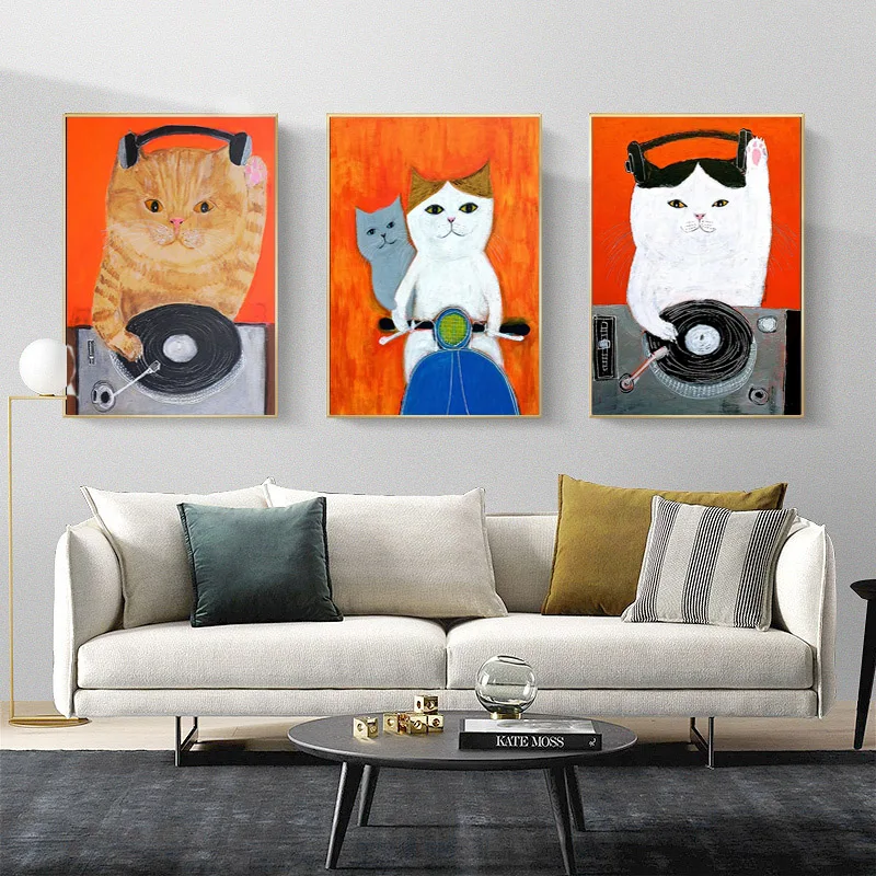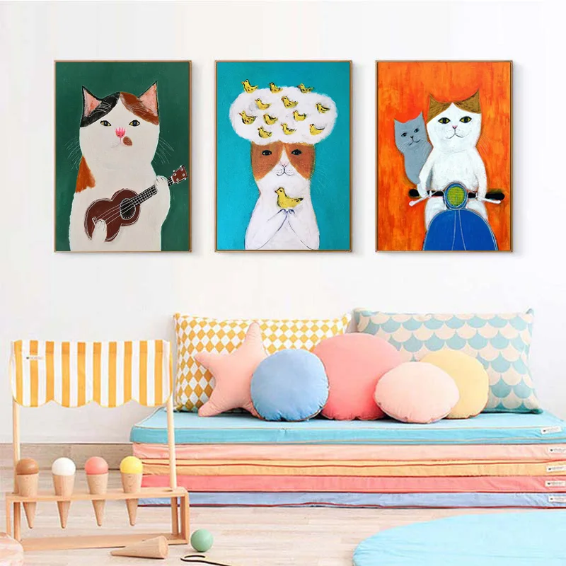 Постеры и принты с изображением мультяшного кота, холст, картина маслом, настенные художественные картины для гостиной, детской спальни, домашний декор