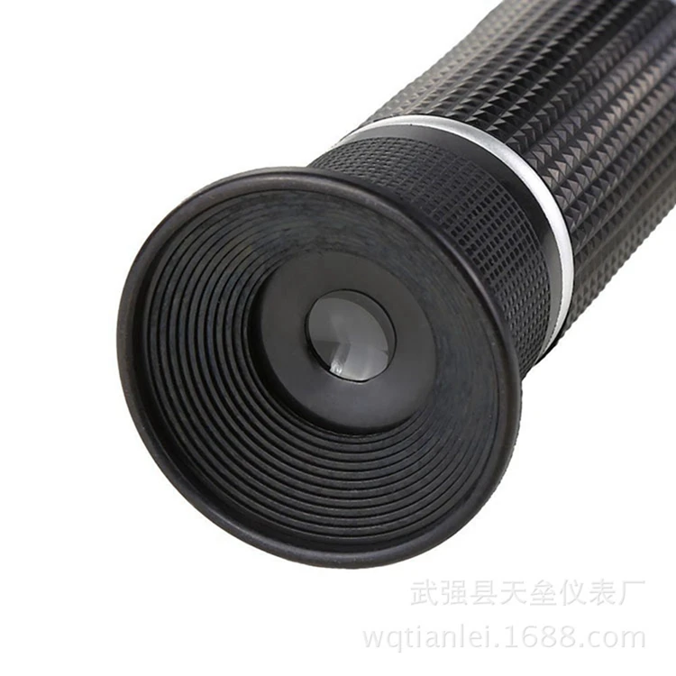 3. Очистите призму мягкой тканью, затем поместите 2-3 капли образца жидкости на призму. Затем закройте крышку и убедитесь, что вода распределяет призму без пузырьков воздуха или сухих пятен. Подождите около 30 секунд, чтобы показания стабилизировались. Совместите призму в сборе с источником светильник. Посмотрите в окуляр, и вы сможете увидеть чтение.