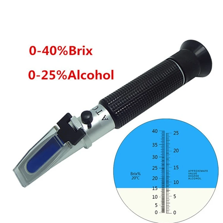 Рефрактометр для винограда, вина, фруктов, сахара, спирта, концентрация 0 ~ 25% спирта, 0 ~ 40% Брикса, рефракционный измеритель ATC, анализатор Брикса, инструмент