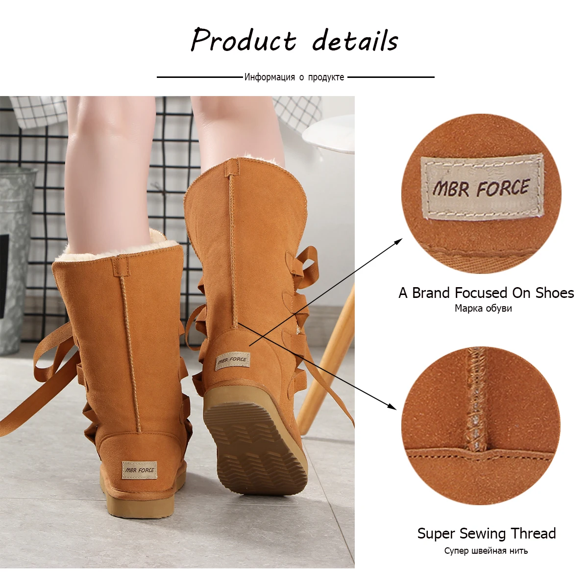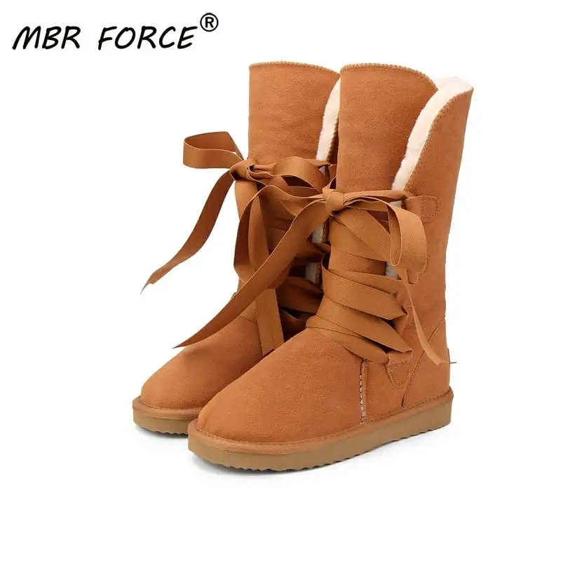 MBR FORCEавстралийские Классические высокие зимние сапоги; Женские сапоги из натуральной воловьей кожи; Высокие сапоги на шнуровке; Теплые зимние сапоги на меху