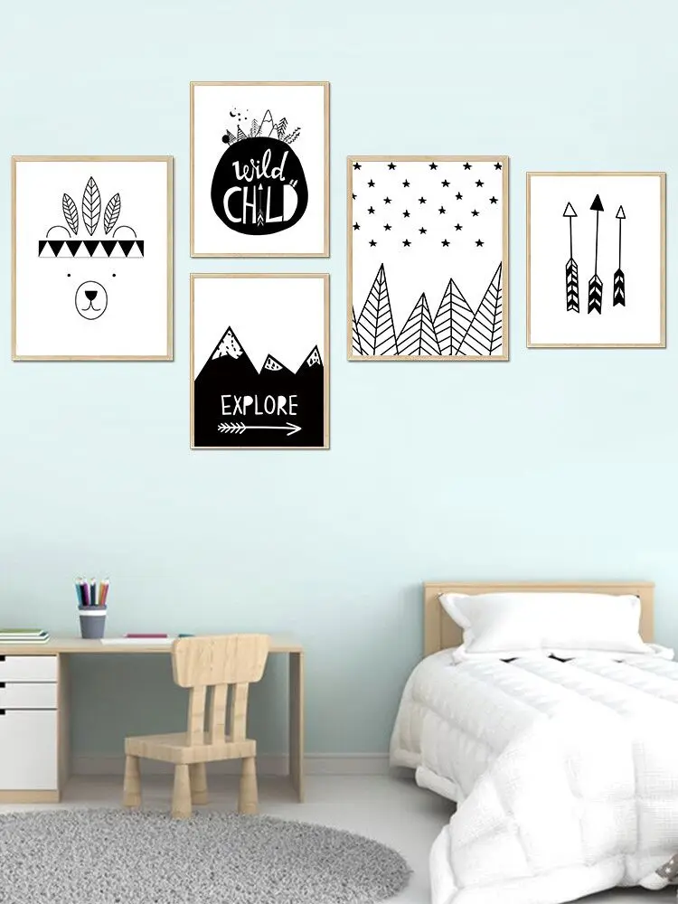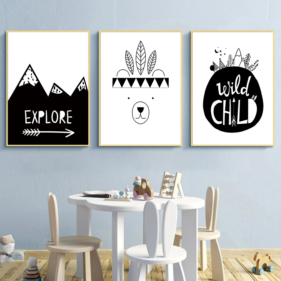 Стрела Исследуйте ребенка художественная стена с цитатой Картина на холсте нордические плакаты и принты черно-белые настенные картины для детской комнаты декор