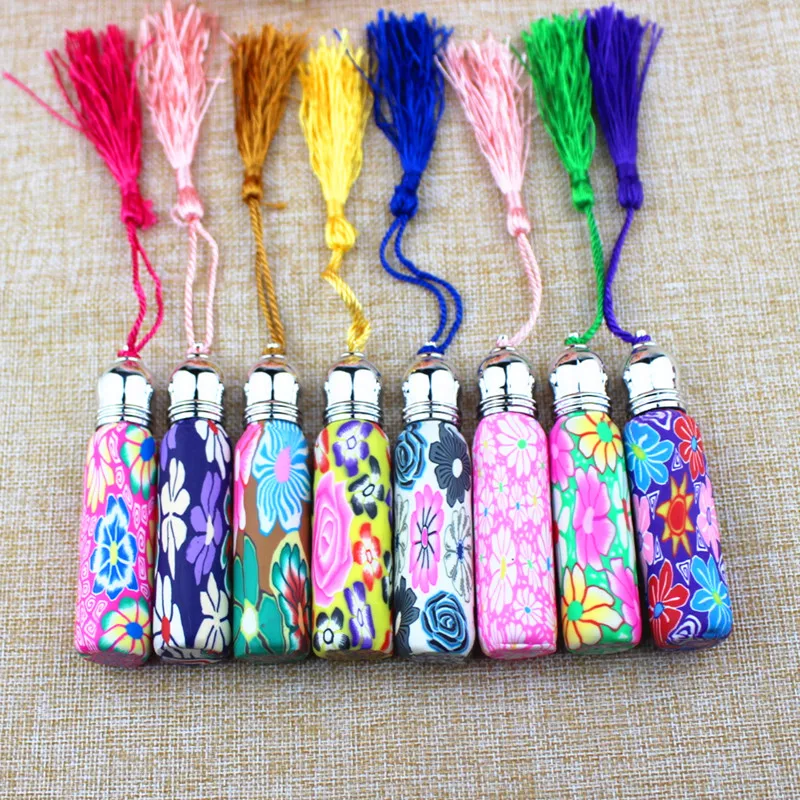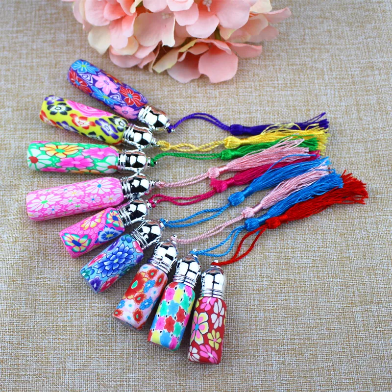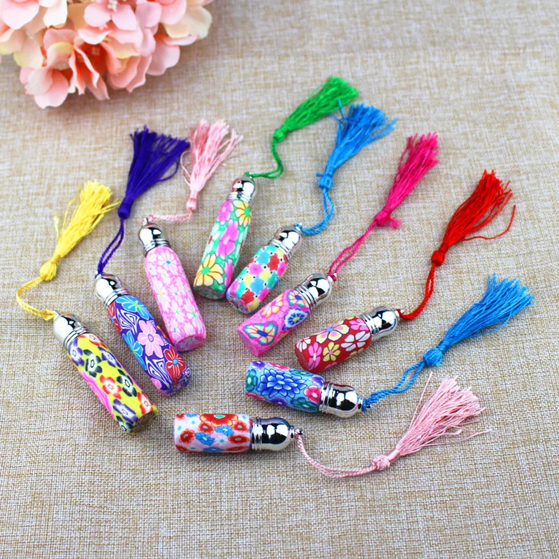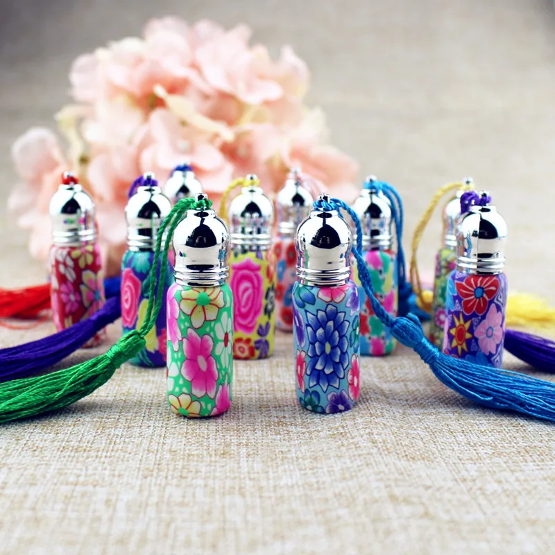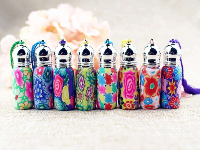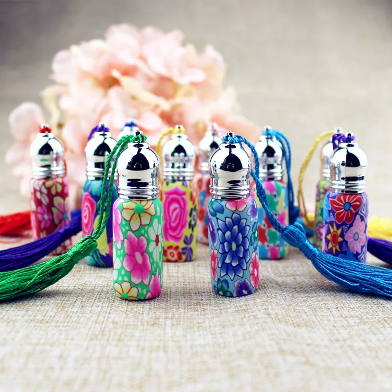 100 шт.лот 6 мл 10 мл стеклянный флакон для духов со стеклянным шариком, флакон для эфирного масла из полимерной глины с несколькими узорами