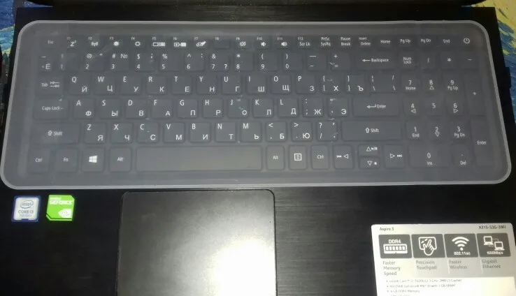 Все супер! Отлично закрывает клавиатуру на ноутбуке, пыль теперь между клавишами не скапливается. Пленка полупрозрачная, в принципе, через нее видно буквы, можно не снимать.