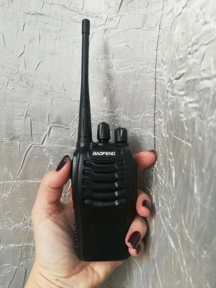 отличная рация, держит заряд 1 день если включенные, дистанция 3-4 остановок в городе среди многоэтажек. легкий и спокойно лезит в корман но антена торчит. качество харошее.