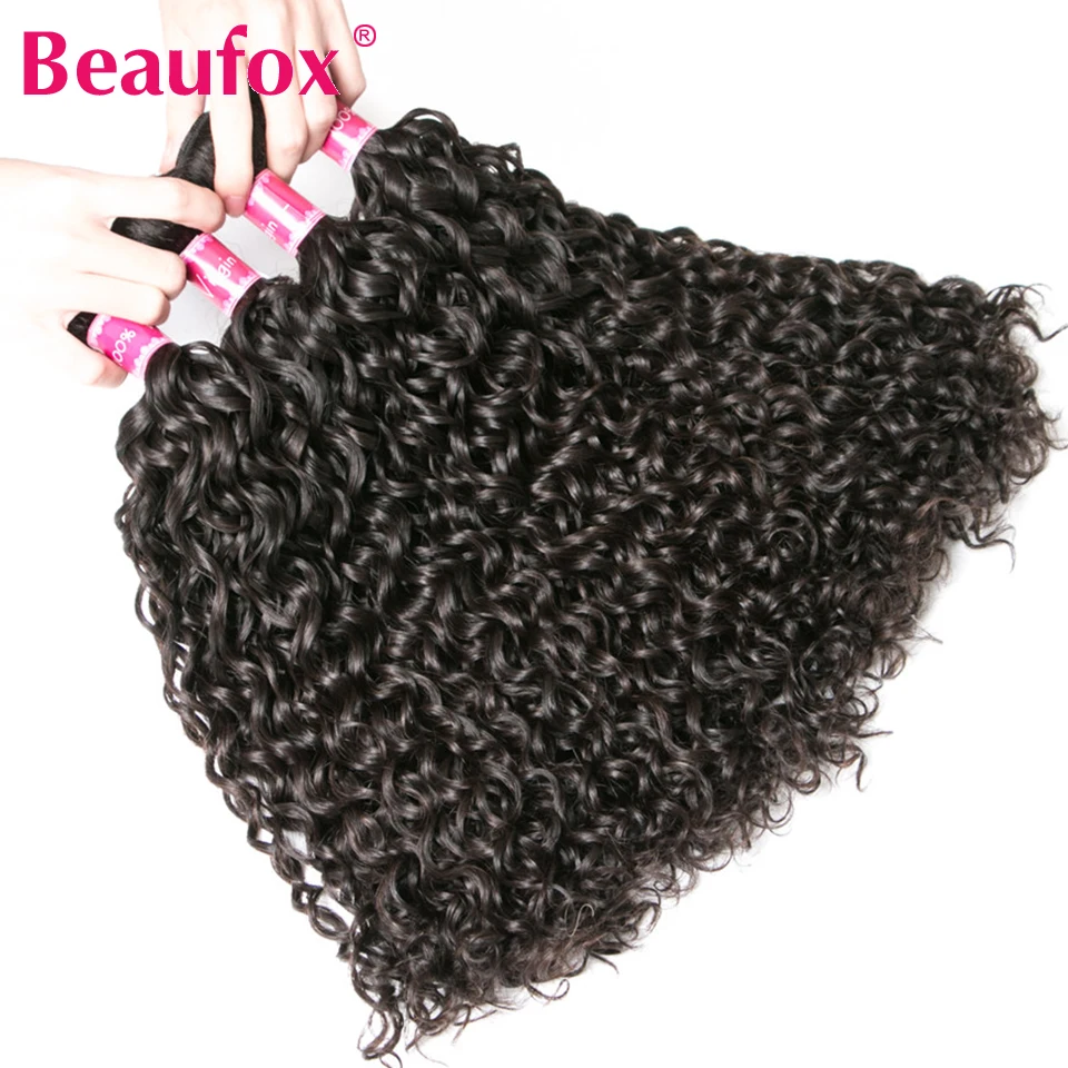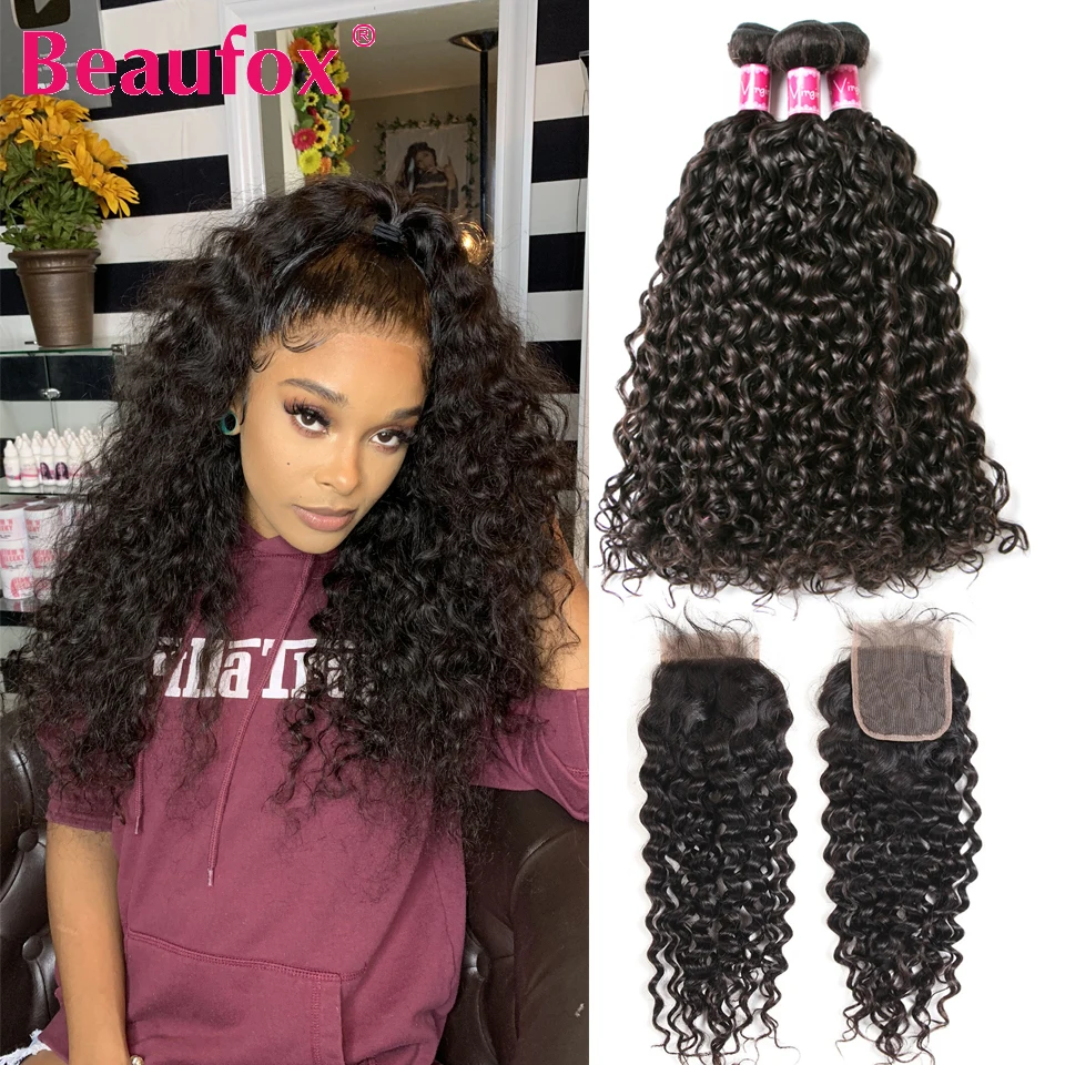 Пряди волнистых волос Beaufox с закрытием, малазийские пучки волос с закрытием, 3 пряди человеческих волос Remy с закрытием
