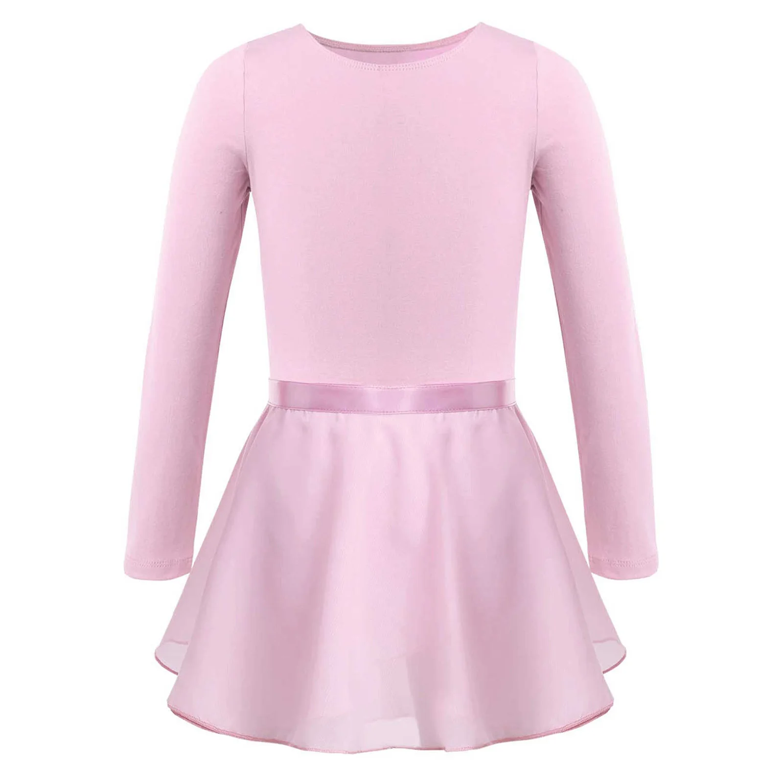 Балетный купальник для девочек, хлопковый, с длинным рукавом, с шифоновой юбкой на завязках