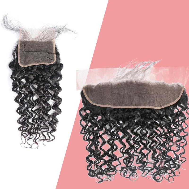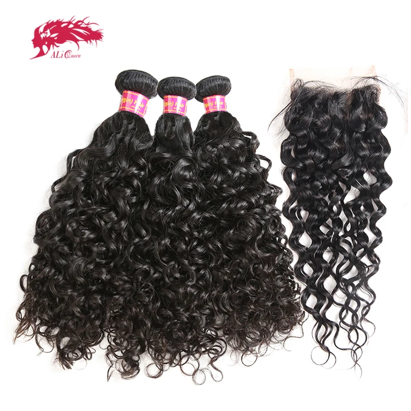 Бразильские натуральные волнистые волосы Ali Queen, пучки с застежкой, 34 шт. человеческие волосы, пучки с 413x4 кружевной застежкойфронтальной застежкой