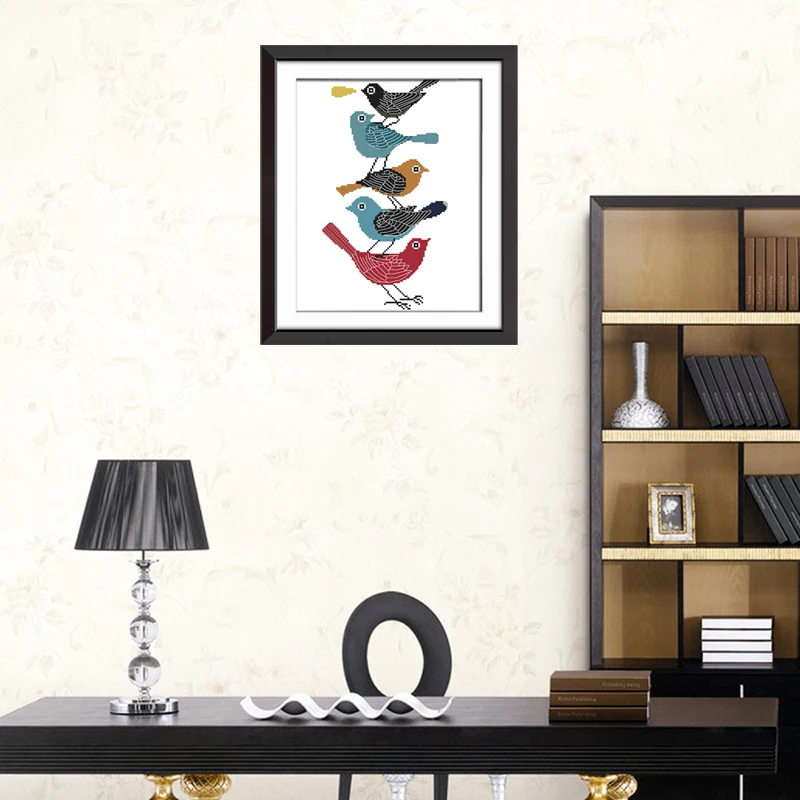 Птицы на лотосе, многослойные птицы, абстрактная живопись (попугай), узор, рассчитанный на холст, DMC, Китайский Набор для вышивки крестом