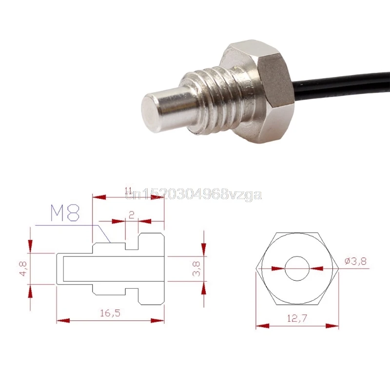 Датчик температуры термистора NTC 10K, кабель зонда с резьбой M8, 1...