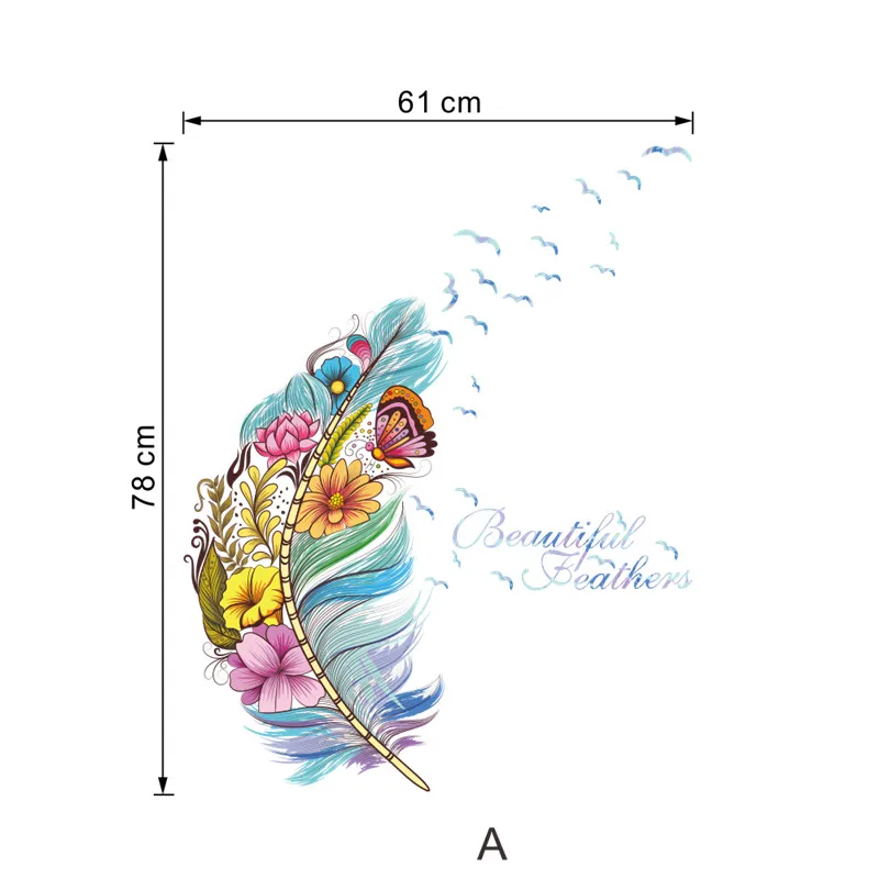 Перья цветок wall art наклейки на ногти, роспись комнаты, магазина украшения подарок домашний Декор diy плакаты