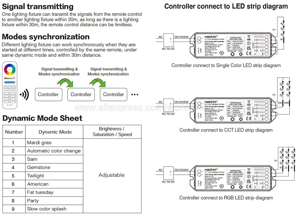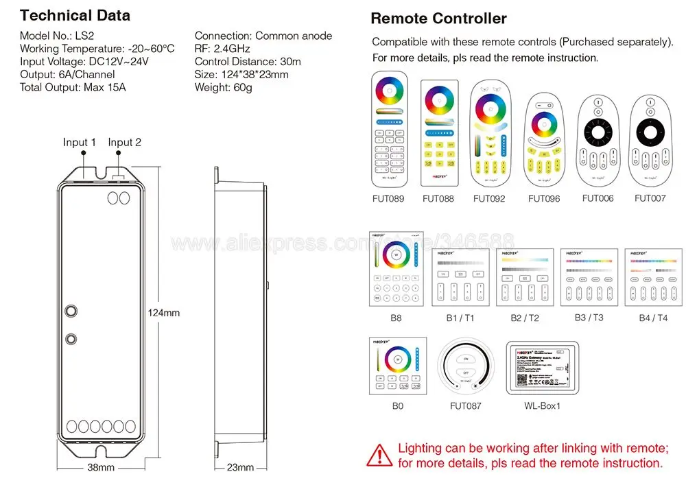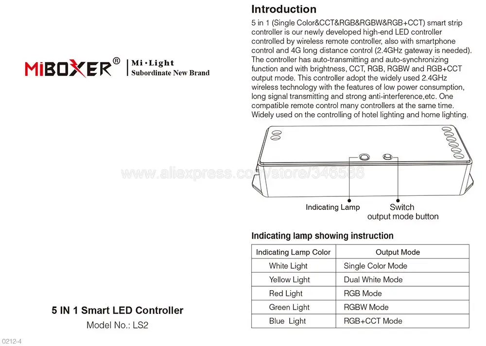 Умный светодиодный контроллер MiBoxer LS2 5 в 1, 12 В постоянного тока, 24 В, 15 А, Одноцветный, CCT, RGB, RGBW, RGB + CCT светодиодный Светодиодная лента 2,4G, беспроводной пульт дистанционного управления