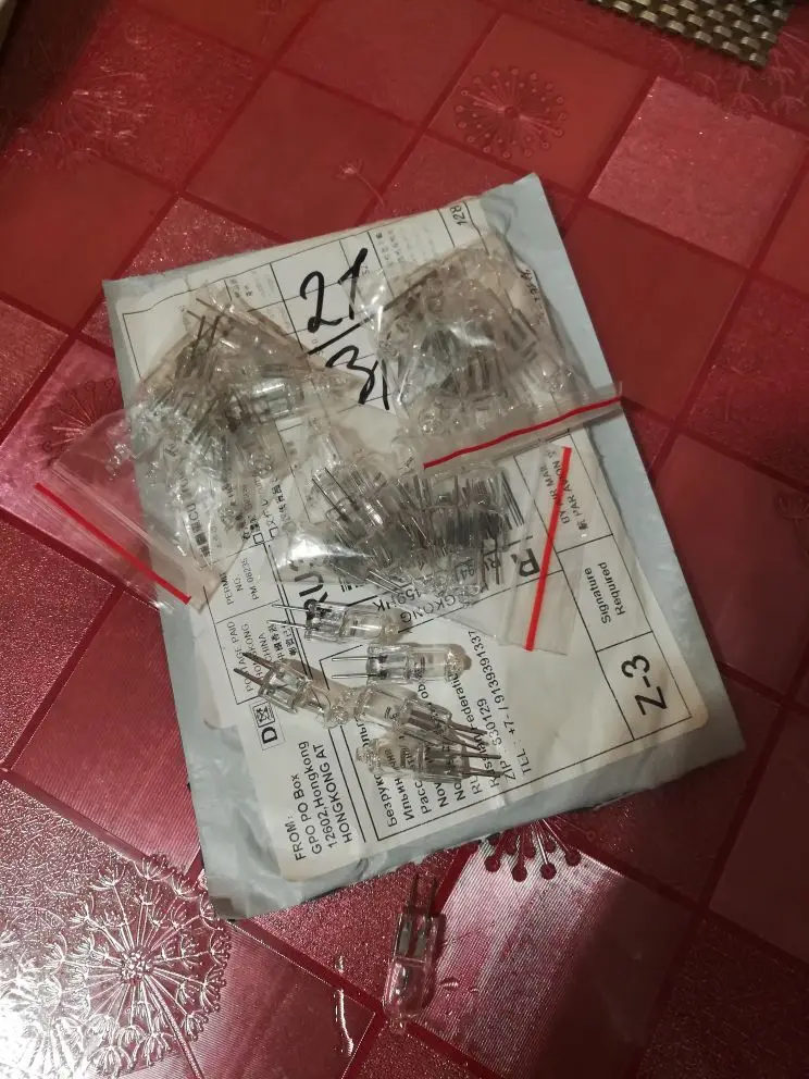 Супер быстрая доставка, 40 ламп упакованы по 10 шт. в пакетики, в первом пакете из 10 ламп 1 бракованная. Остальные не проверяли.