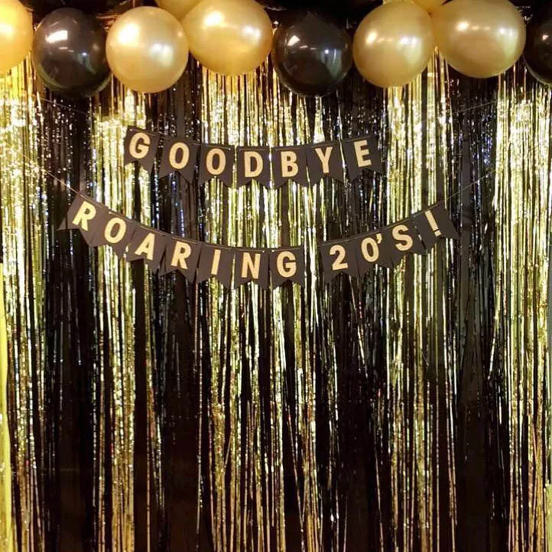 1*2 м золото Фольга бахрома Шторы мишура гирлянды блестящим отливом с кисточками на свадьбу, день рождения, отделка стен и дверей фотобумажный фон