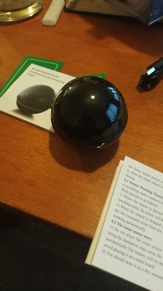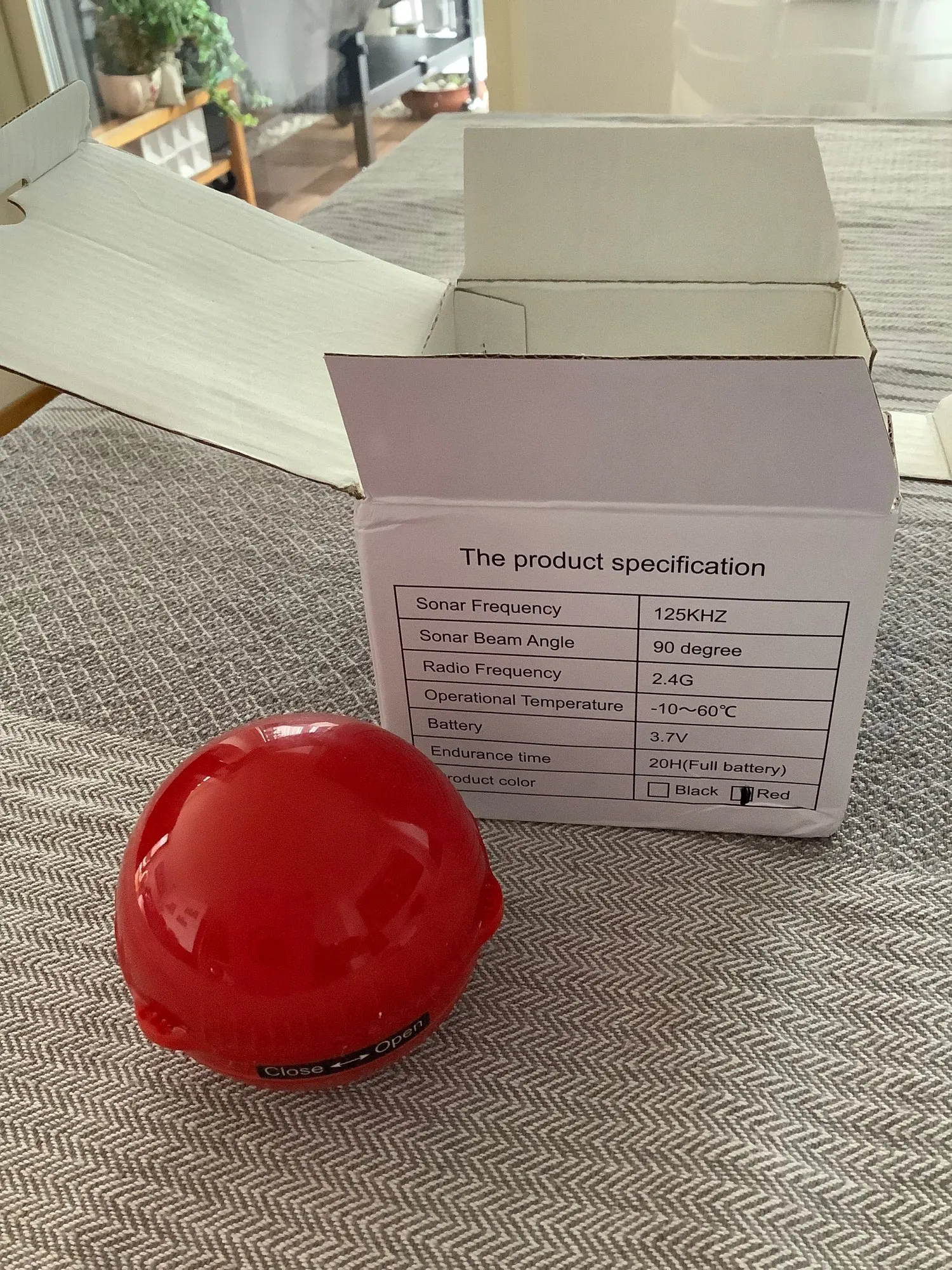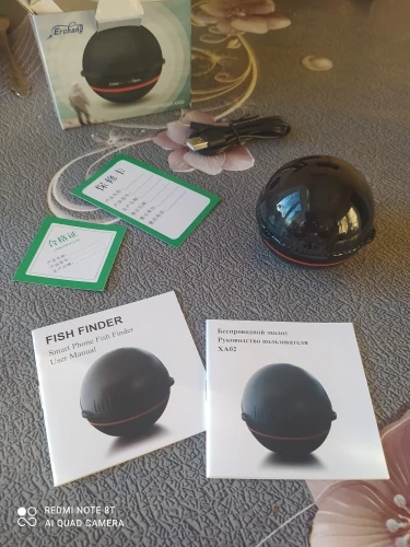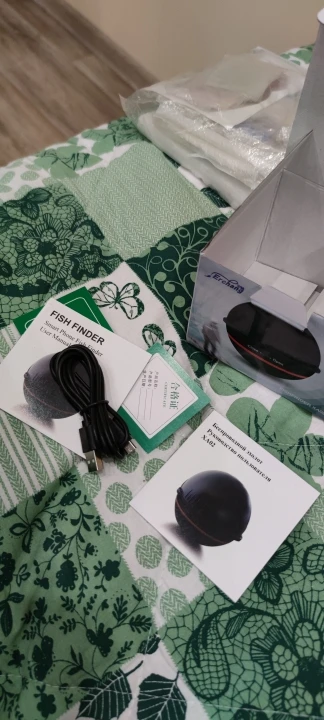 Очень быстрая доставка!!! Это супер класс!!! Эхолот с виду очень хороший. В наличии имеется инструкция на русском языке! Поставил на зарядку,светилось красным светом ( на фото видать), через время засветился зелёный свет ( на фото нет,т.к. всего 5 фото). На откручивающейся крышке имеются маленькие отверстия , чтобы зафиксировать эхолот для забросов в воду, хотелось бы чтобы эти отверстия были побольше,или хотя бы одно из них, чтобы можно было цеплять его на карабин или петлей лески потолще чтобы не потерять эхолот. Продавцу СПАСИБО большое!!! Сегодня буду активировать на водоеме по инструкции,если что-то не так,то добавлю отзыв.