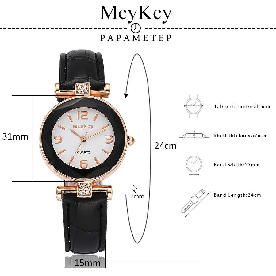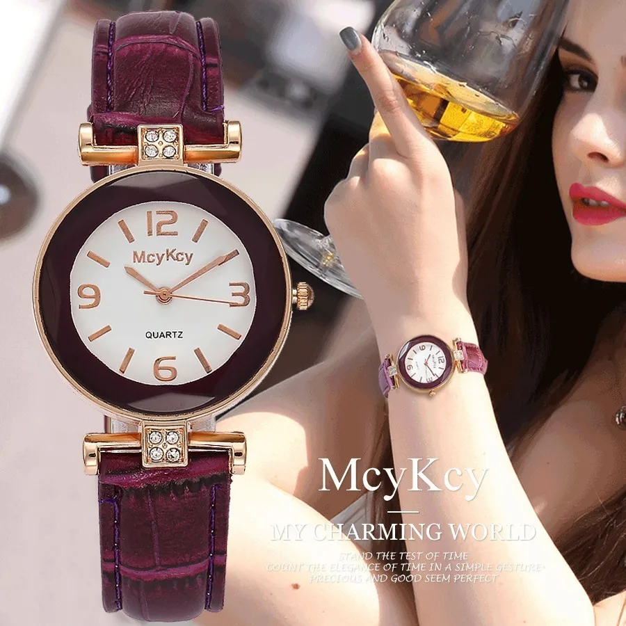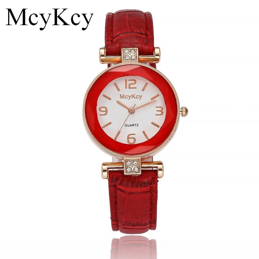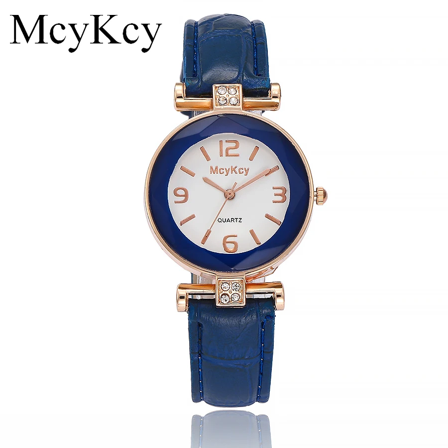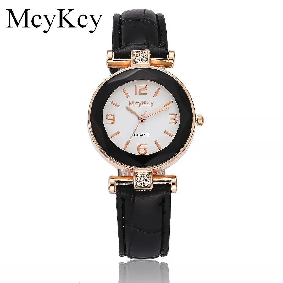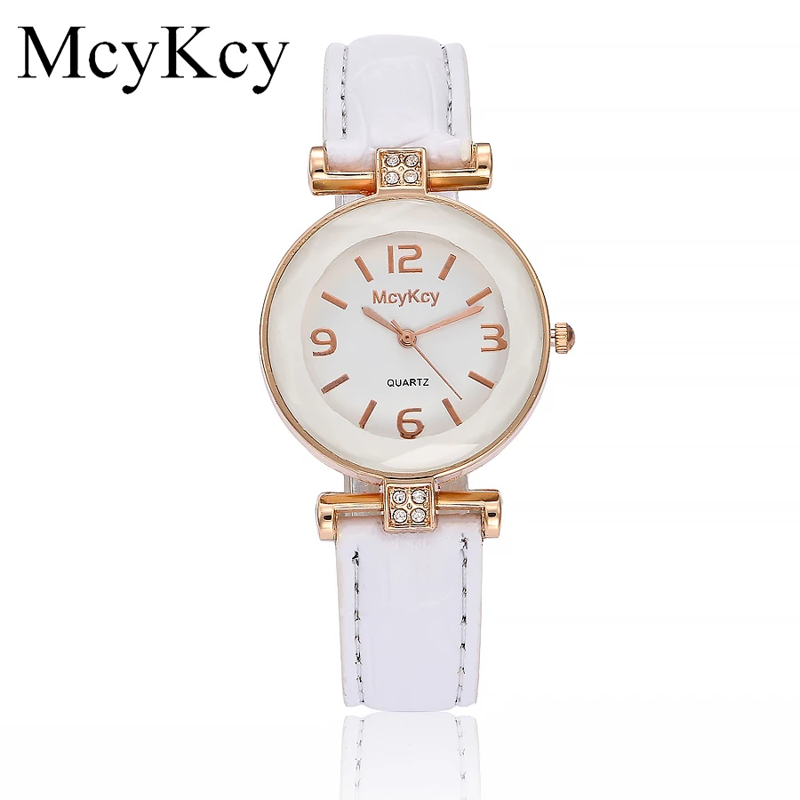 Часы McyKcy женские кварцевые, брендовые Роскошные модные наручные, с кожаным ремешком, с розовым золотом и кристаллами