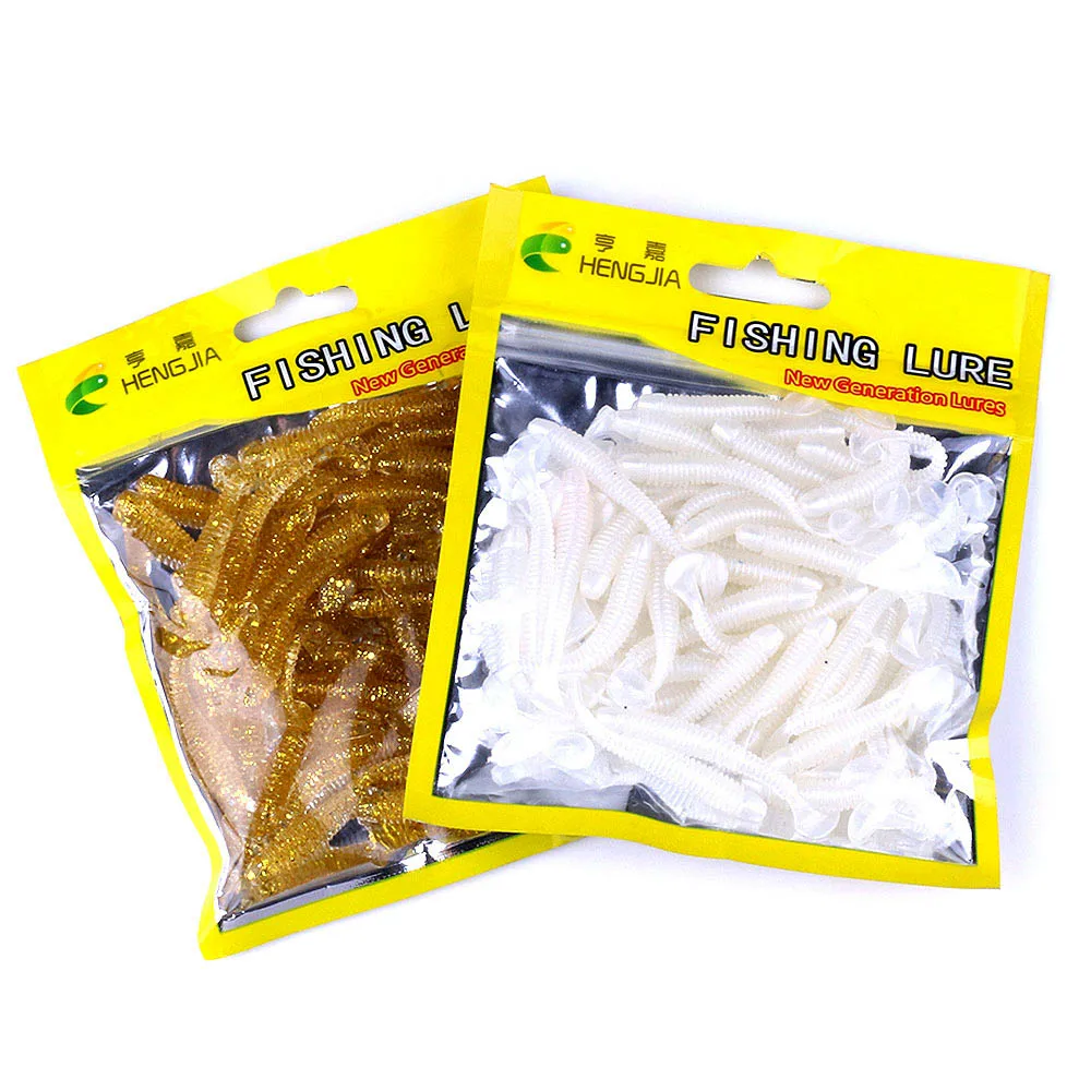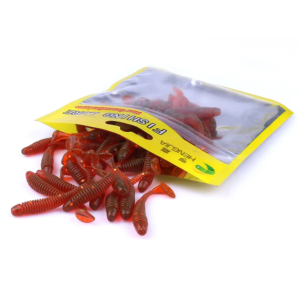 Hengjia 50 шт.лот 4,5 см Маленькая Мягкая приманка в виде червяка, силиконовая приманка в виде т-образного хвоста, воблер, рыболовные снасти для ловли карпа, окуня, щуки