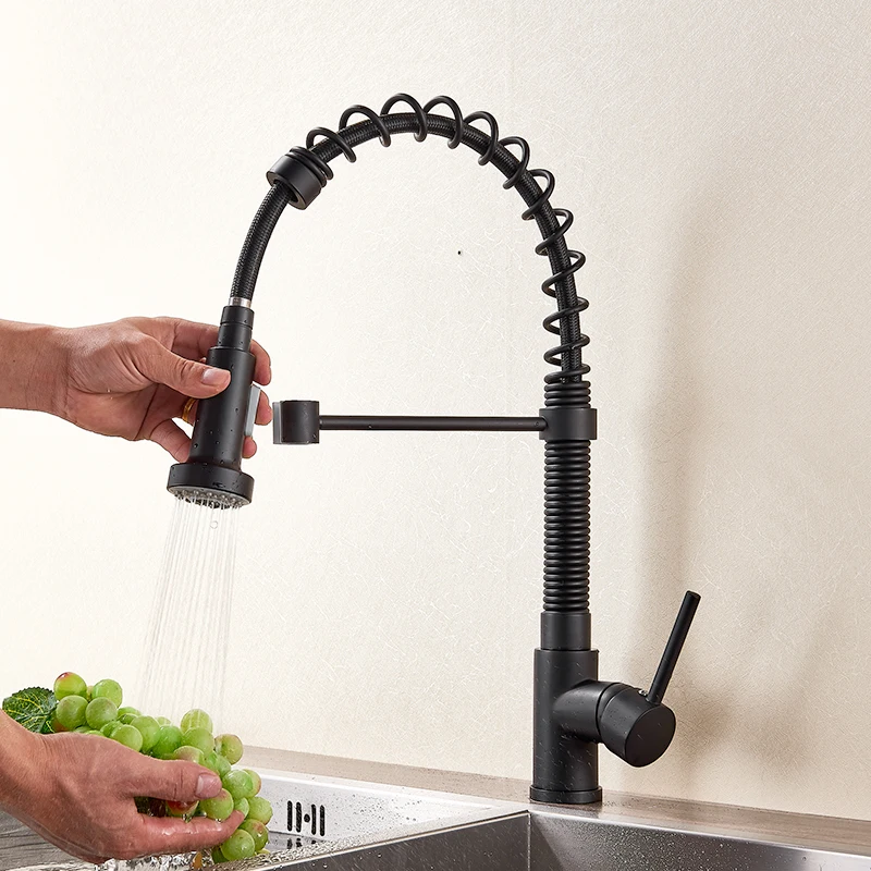 Матовый черный кухонный смеситель на пружине, Однорычажный Выдвижно...