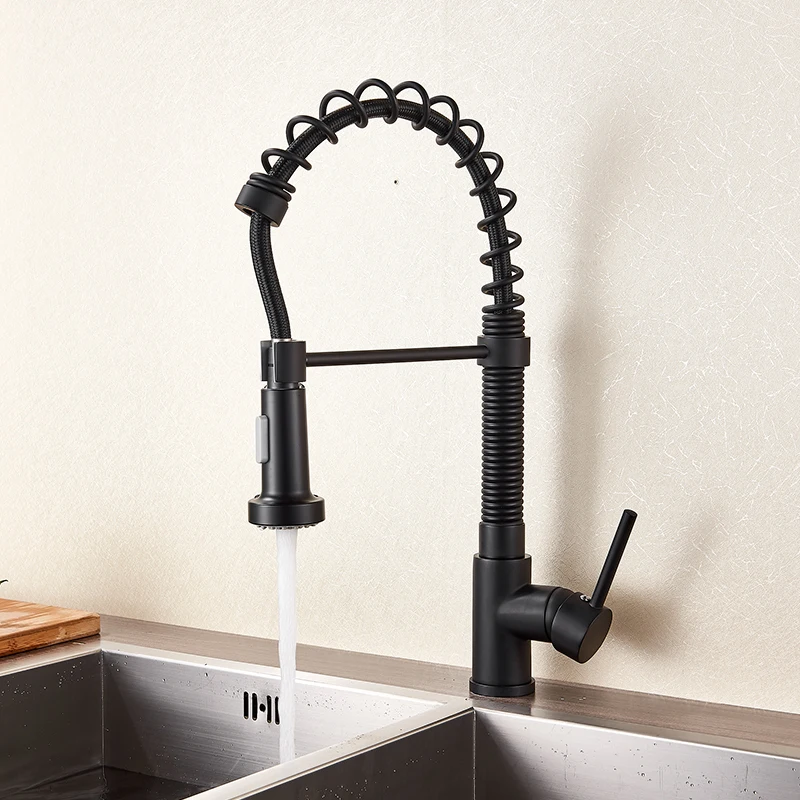 Kitchen Spring FaucetMatte Black Kitchen Spring Faucet Single Level Mixer Tap