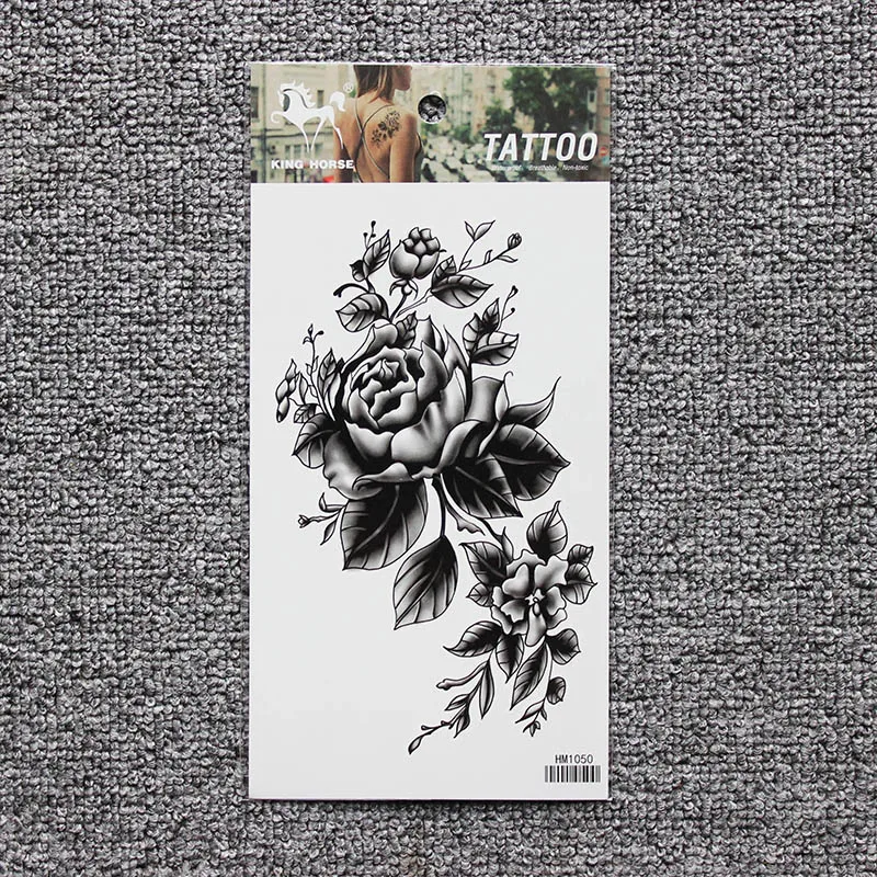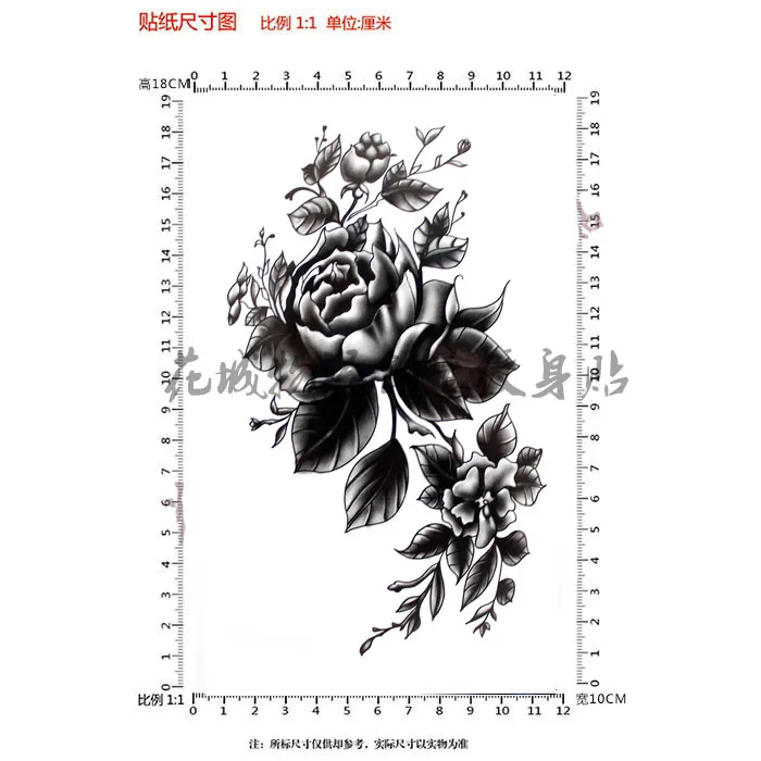 Черный большой цветок розы боди арт водонепроницаемый висометр...US $1,05