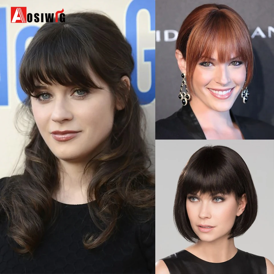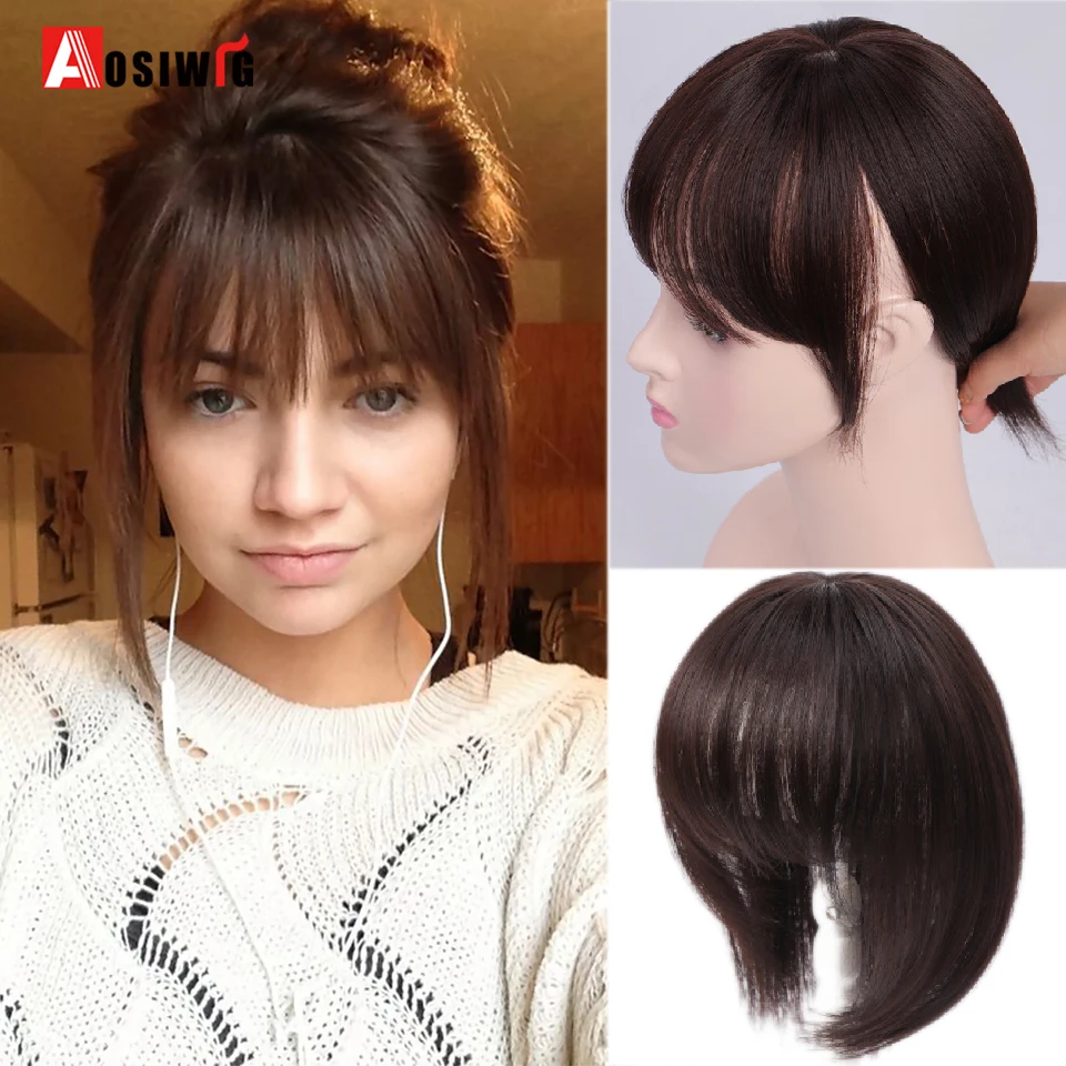 AOSIWIG черные коричневые челки на зажиме спереди, невидимые бесшовные шиньоны для женщин, синтетические челки на зажиме для наращивания
