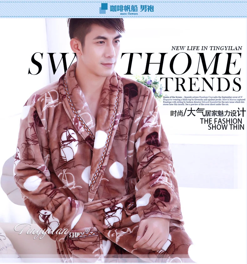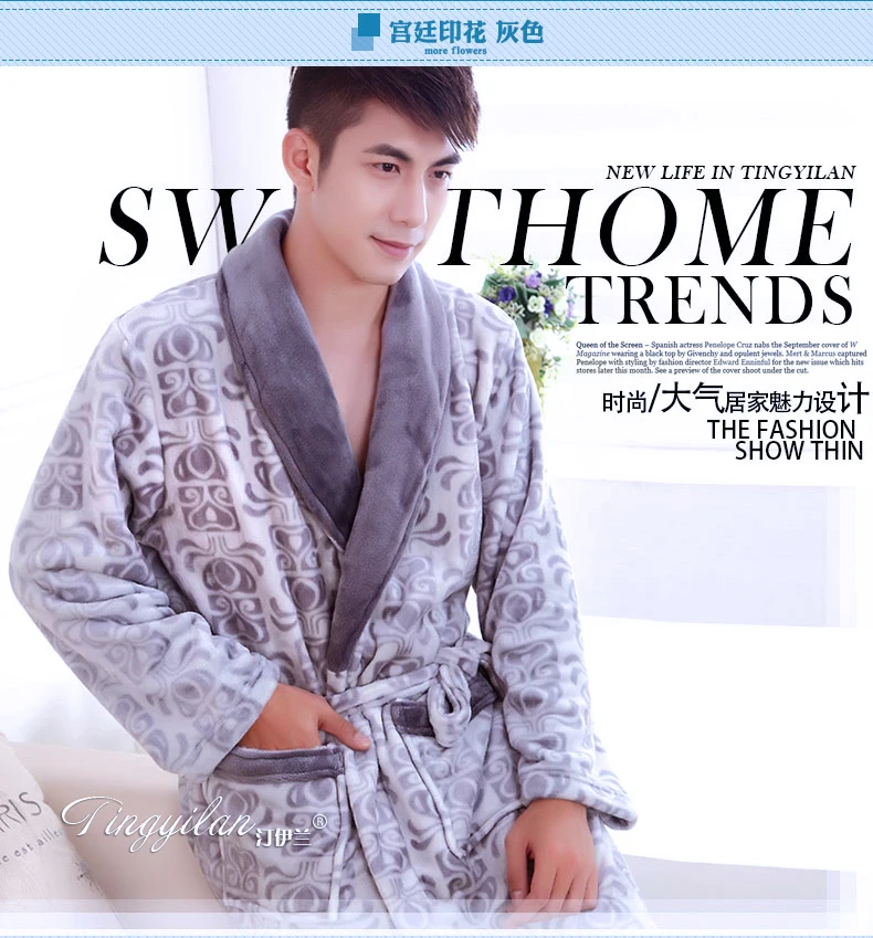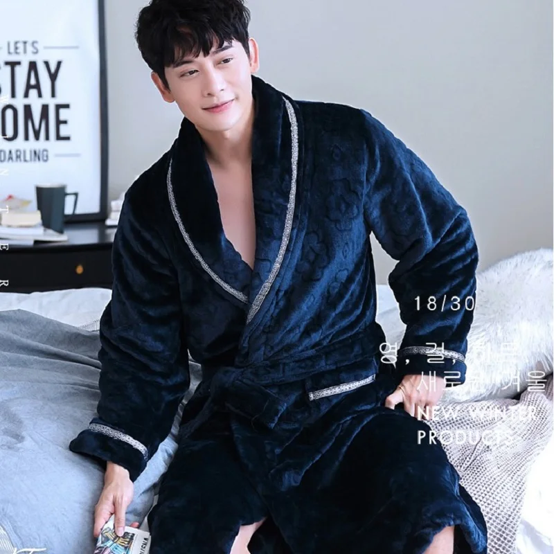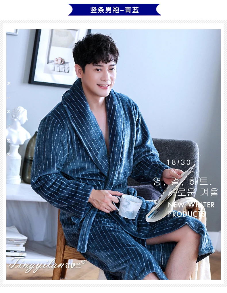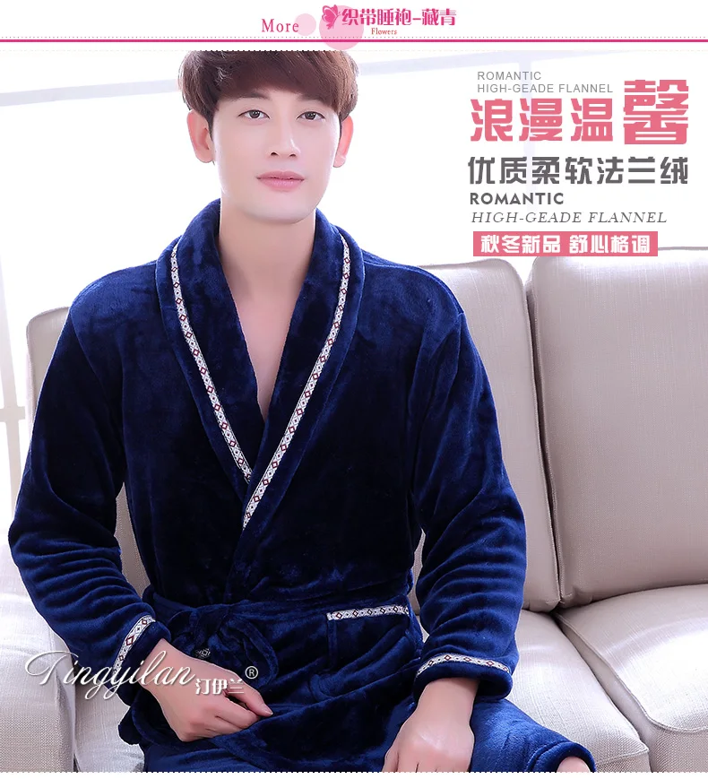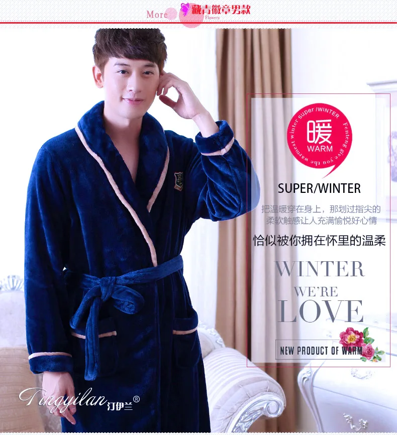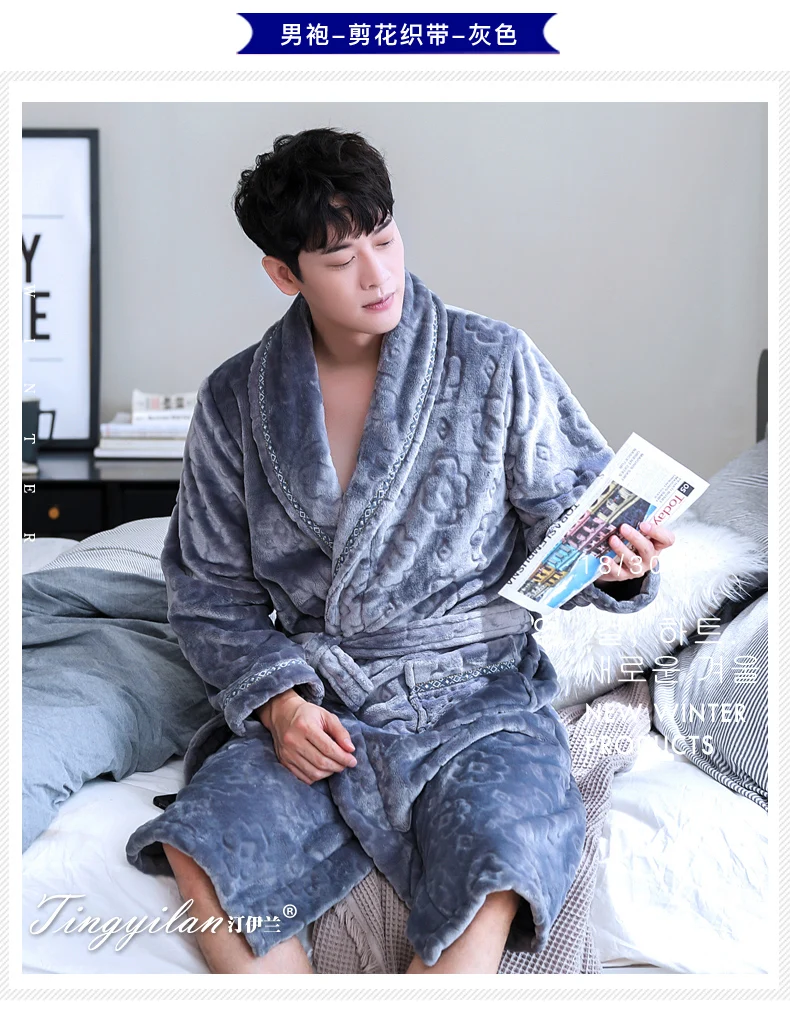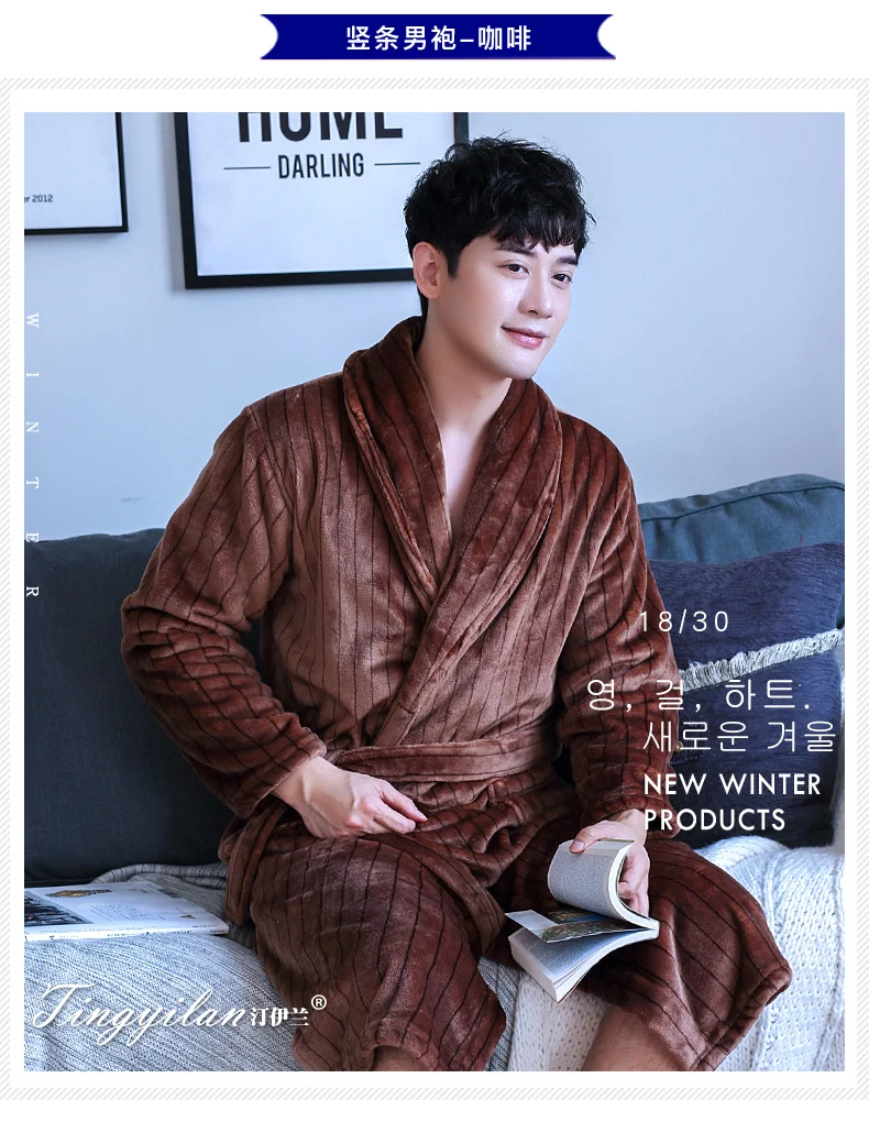 Осенне-зимний плотный фланелевый Халат, мужской длинный флисовый халат кораллового цвета, Мужская брендовая одежда для сна, плотная ночная рубашка, теплая Мода