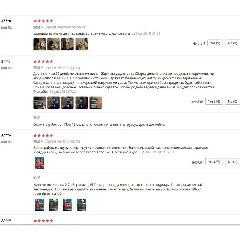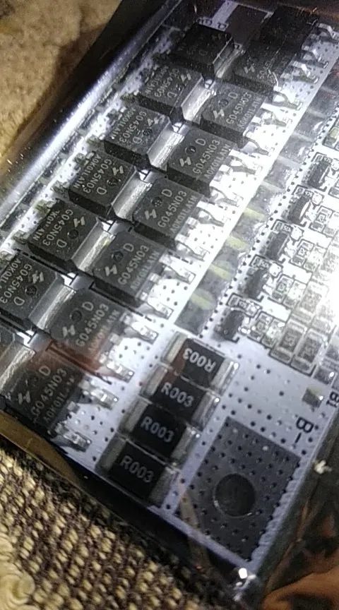 хорошая плата, дороже в полтора раза, чем у других поставщиков. но она того стоит.. качественный монтаж, покрытие лаком и транзисторы KIA. брал для шуруповерта. чтобы защита по току срабатывала на 50А надо выпаять два из четырёх резисторов 0,003 Ом.