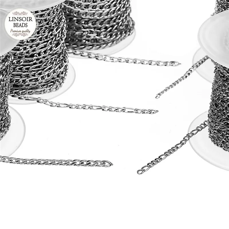 10 метрических ярдоврулон 3 мм 4 мм 5 мм Ширина Серебряный тон Нержавеющаясталь цепочка оптом Для мужчин Фигаро цепи для ожерелья Браслеты ювелирных изделий