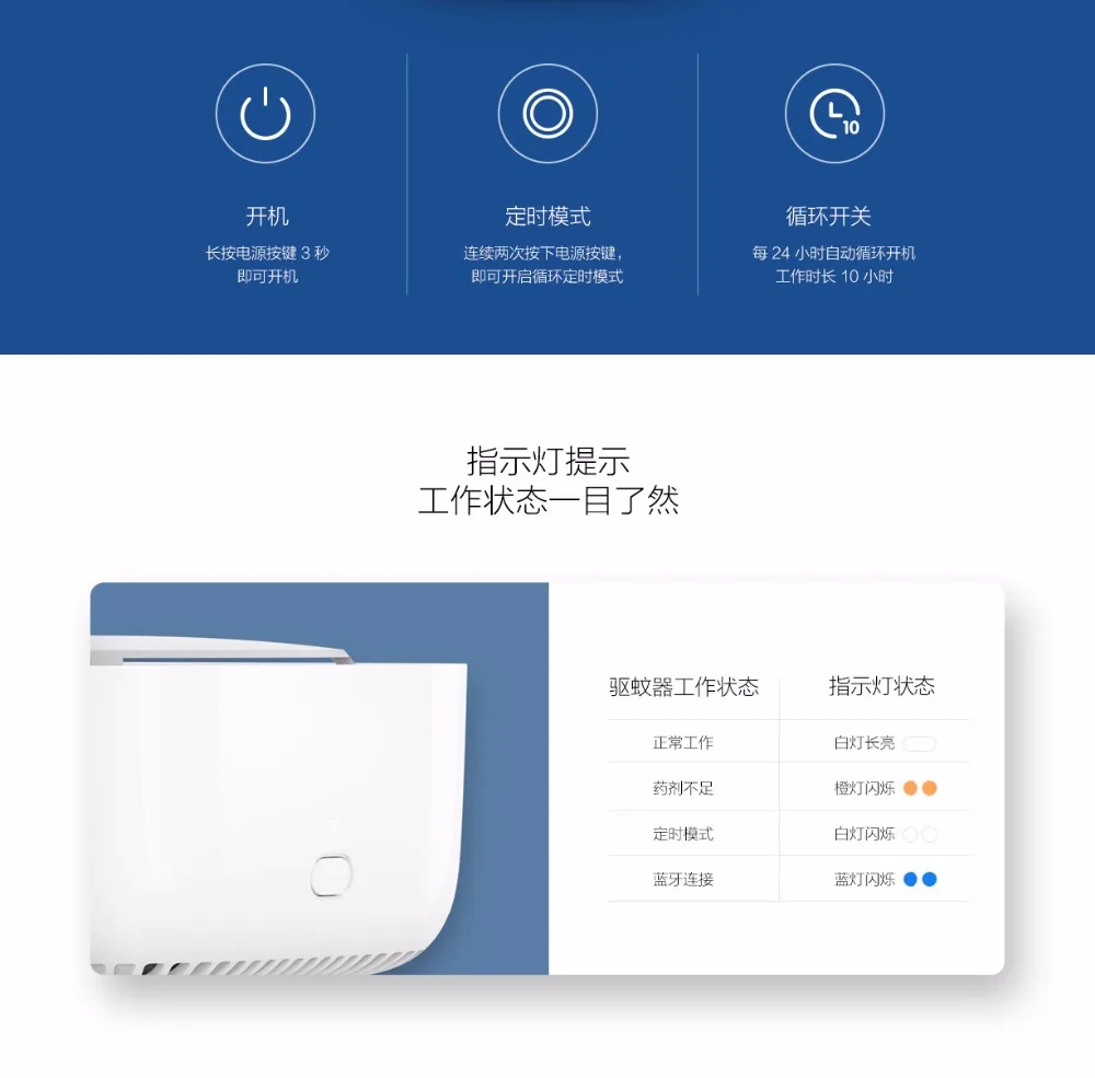 Этот продукт является интеллектуальным противомоскитным средством xiaomi, использование: 1: Установите батарею, установите и замените москитную катушку. 2: удерживайте переключатель в течение 3-5 секунд для включения.