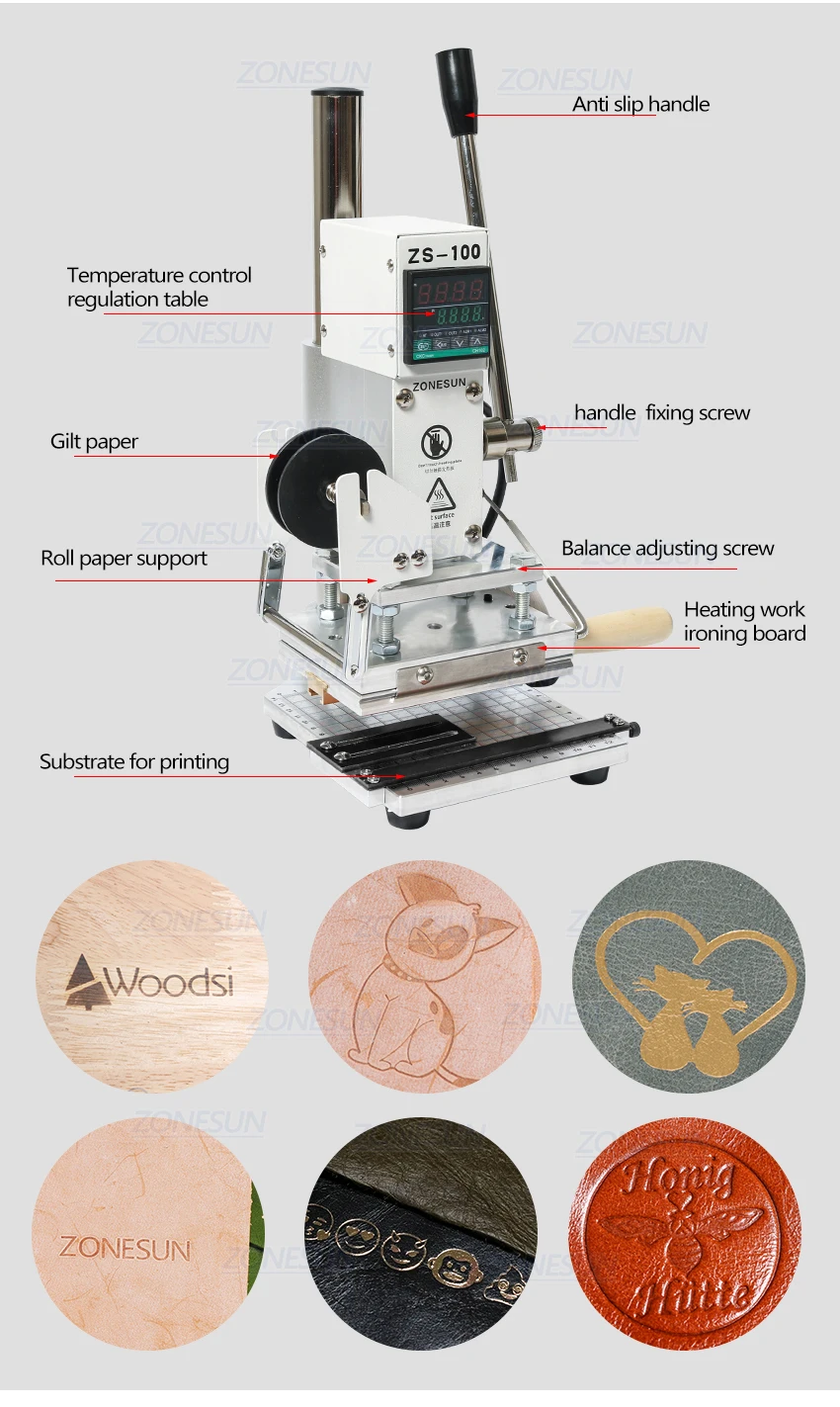 ZONESUN ZS-100, новая ручная машина для тиснения кожи, бумаги, дерева с измерительной линией, машина для горячего тиснения фольгой